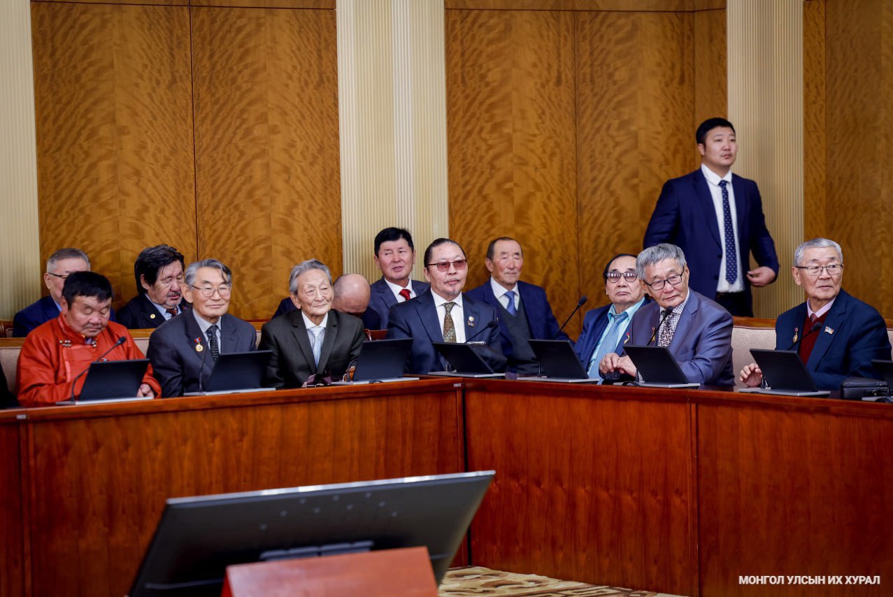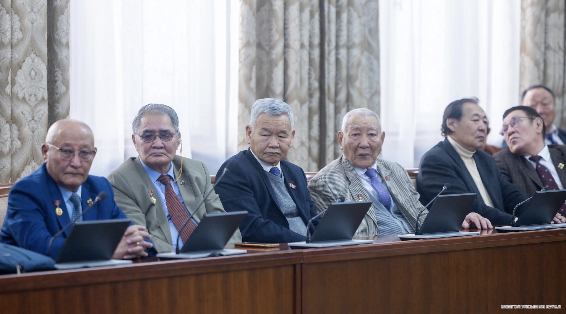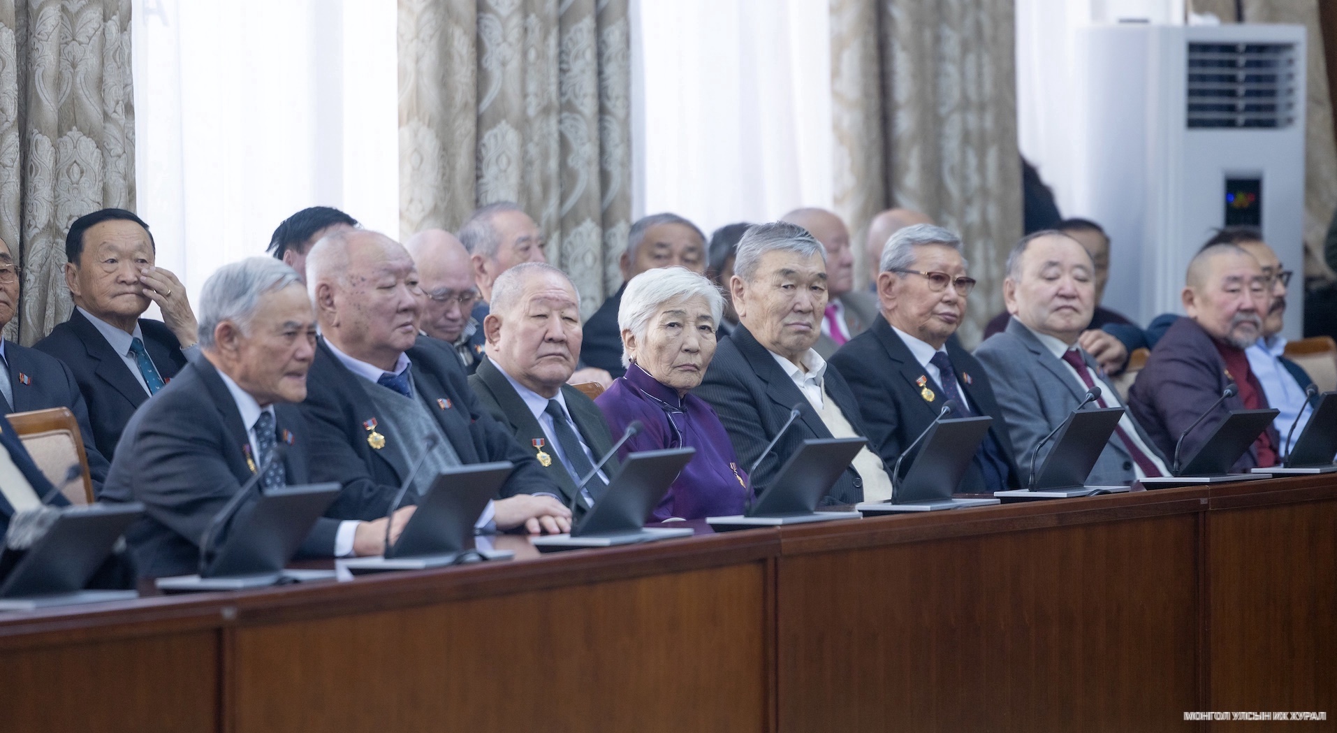 Following this, P. Enkhsaikhan, Executive Director of the Association of Democratic Constitution Framers, delivered remarks. He expressed gratitude to the Chairman for hosting and honoring deputies of the former State Great Hural and State Baga Hural. He noted that of the 430 deputies who adopted the Constitution, only 195 are alive today, more than 80 percent of whom are over 70 years old, and called for greater attention to their social welfare.