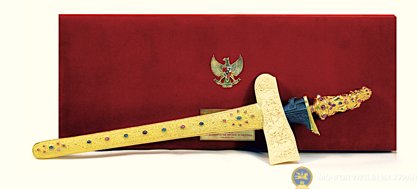 Монгол төрийн түүхийн музейн сан хөмрөгт хадгалагдаж байгаа Монгол Улсын Ерөнхийлөгч, Улсын Их Хурлын Дарга, Улсын Их Хурлын гишүүдэд гадаад улсуудын төр засгийн тэргүүн нараас бэлэг болгон өгсөн дурсгалын эд зүйлсийн дээжээс толилуулж байна.