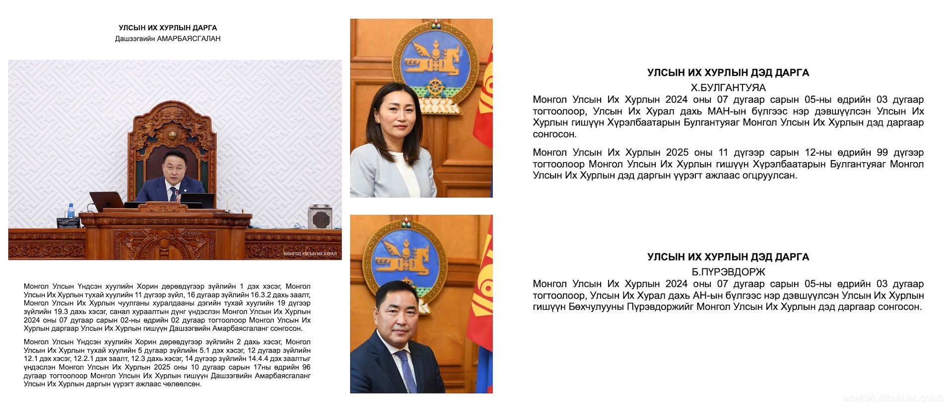 УЛСЫН ИХ ХУРЛЫН ДАРГА, ДЭД ДАРГА НАР