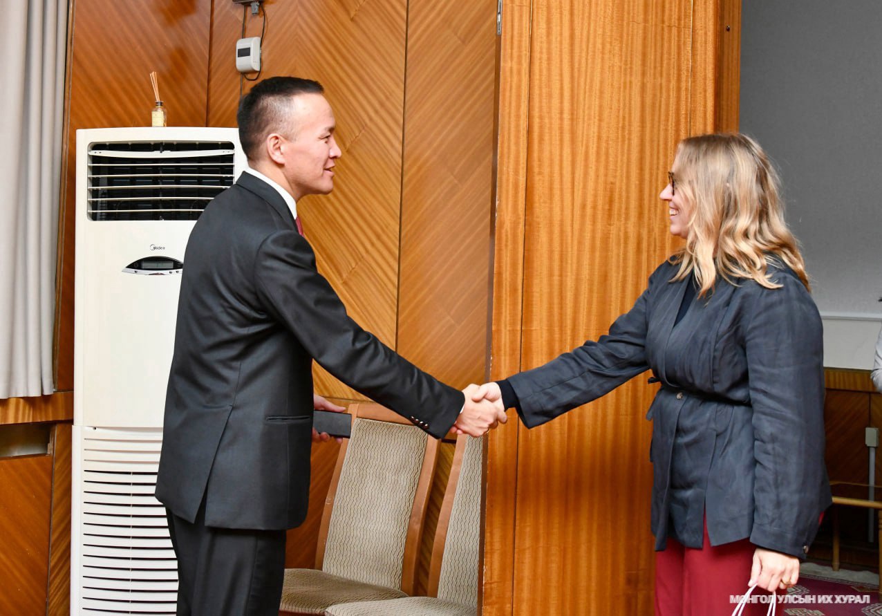 2025.09.24. Хууль зүйн байнгын хорооны дарга Д.Цогтбаатар “Эрүү шүүлтээс урьдчилан сэргийлэх нийгэмлэг” олон улсын байгууллагын Ерөнхий нарийн бичгийн дарга Николь Хогг тэргүүтэй төлөөлөгчдийг хүлээн авч уулзав. Талууд эрүү шүүлтээс ангид байх хүний эрхийг хангах, урьдчилан сэргийлэх чиглэлээр олон улсын сайн туршлагыг Монгол Улсад нэвтрүүлэх, “Эрүү шүүлтээс урьдчилан сэргийлэх нийгэмлэг” олон улсын байгууллагатай хамтын ажиллагааг өргөжүүлэх талаар санал солилцлоо... https://www.parliament.mn/nn/75731/