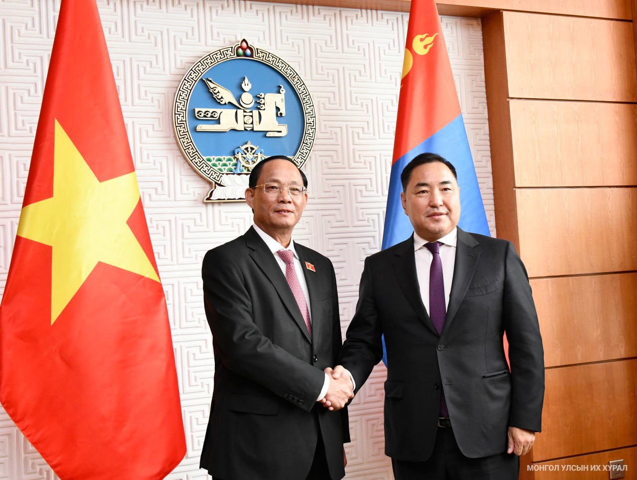 Монгол Улсын Их Хурлын дэд дарга Б.Пүрэвдорж өнөөдөр (2025.10.01) манай улсад айлчилж буй Бүгд Найрамдах Социалист Вьетнам Улсын Үндэсний Ассамблейн Тэргүүн дэд дарга Чан Куанг Фыөнг тэргүүтэй төлөөлөгчдийг хүлээн авч уулзлаа. Манай хоёр улс дипломат харилцааны түүхт 70 жилийн ойг тохиолдуулан өнгөрсөн онд Иж бүрэн стратегийн түншлэл тогтоосон бөгөөд энэ удаагийн айлчлал тус улсын Үндэсний Ассамблейн Тэргүүн дэд даргын түвшинд 10 жилийн дараа хэрэгжиж буйгаараа онцлог юм. Уулзалтын эхэнд УИХ-ын дэд дарга хүндэт зочдыг тавтай морилохыг уриад, Монгол, Вьетнам хоёр улсын уламжлалт найрсаг харилцаа улам бүр шинэ агуулгаар баяжиж, олон талт хэлбэрээр хөгжиж буйг онцлов.