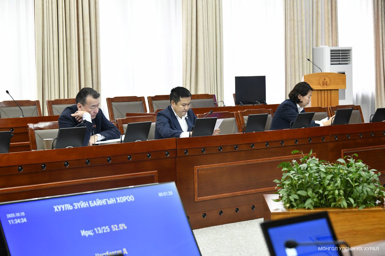 Улсын Их Хурлын Хууль зүйн байнгын хорооны өнөөдрийн (2025.10.15) хуралдаан 11 цаг 33 минутад гишүүдийн 52 хувийн ирцтэй эхэлж, гурван асуудал хэлэлцэхээр танилцууллаа.