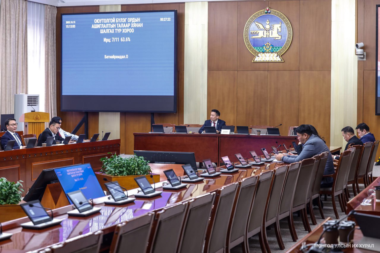 Улсын Их Хурлын 2025 оны 62 дугаар тогтоолоор байгуулагдсан Оюутолгойн бүлэг ордын ашиглалтад Монгол Улсын эрх ашгийг хангуулах, хүртэх өгөөжийг нэмэгдүүлэхтэй холбоотой баримт бичиг, үйл ажиллагаанд хяналт шалгалт хийх Улсын Их Хурлын хянан шалгах түр хороо өнөөдөр (2025.10.15) гишүүдийн 63.6 хувийн ирцтэйгээр 14 цаг 45 минутад эхэллээ. Хуралдаанаар дөрвөн асуудал хэлэлцэхээр товлосон талаар Хянан шалгах түр хорооны дарга О.Батнайрамдал танилцуулав.
