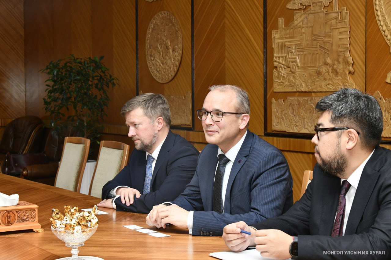Улсын Их Хурал дахь Монгол-Германы парламентын бүлгийн дарга Н.Алтаншагай, тус бүлгийн гишүүн, Улсын Их Хурлын гишүүн С.Эрдэнэбат, О.Саранчулуун нар өнөөдөр (2025.10.27) ХБНГУ-ын Бундестаг дахь Герман-Төв Азийн парламентын бүлгийн дэд дарга, ноён Тобиас Винклертэй уулзлаа.