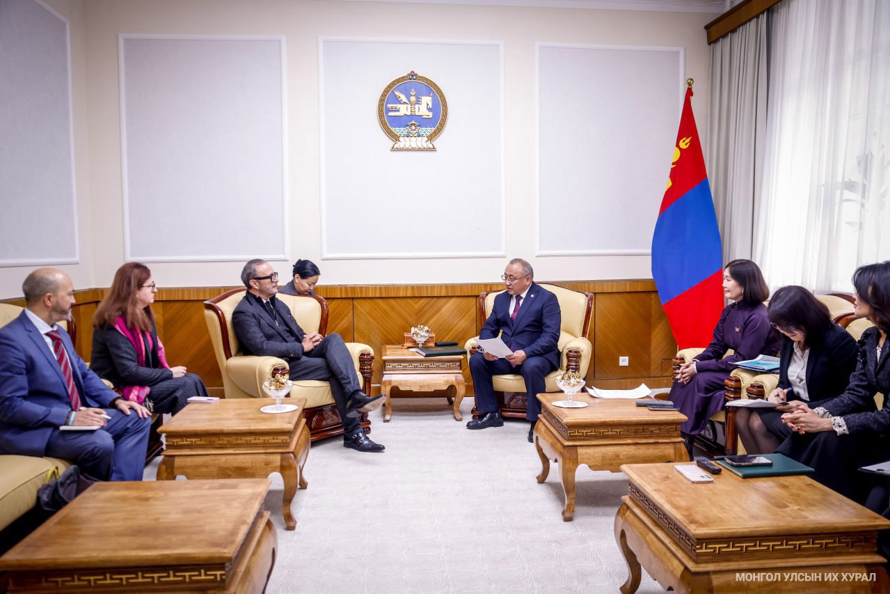 Улсын Их Хурлын гишүүн, Байгаль орчин, хүнс, хөдөө аж ахуйн байнгын хорооны дарга Б.Бейсен, Улсын Их Хурлын гишүүн Б.Мөнхбаясгалан нар өнөөдөр /2025.10.30/ Цөлжилттэй тэмцэх тухай Нэгдсэн Үндэстний Байгууллага /НҮБ/-ын конвенцын Нарийн бичгийн газрын Тамгын газрын дарга Ражеб Булхаруф тэргүүтэй төлөөлөгчдийг хүлээн авч уулзлаа.