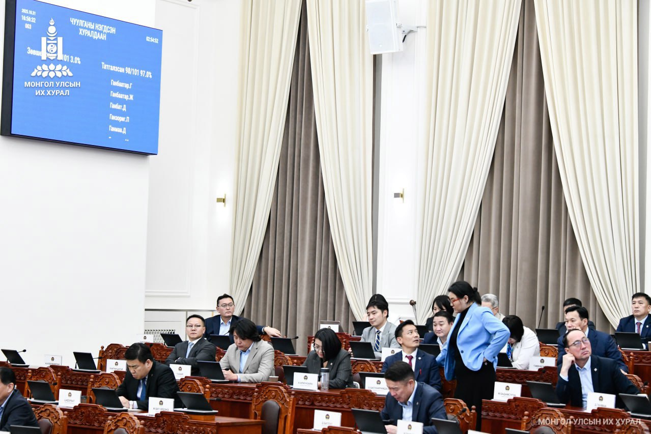 Улсын Их Хурлын чуулганы өнөөдөр (2025.10.31)-ийн нэгдсэн хуралдааныг Улсын Их Хурлын дэд дарга Б.Пүрэвдорж даргалан явуулав. Тэрбээр чуулганы нэгдсэн хуралдааны эхэнд Засгийн газраас энэ сарын 30-ны өдөр буюу өчигдөр Улсын Их Хуралд өргөн мэдүүлсэн Монгол Улсын Засгийн газар, Бүгд Найрамдах Казахстан Улсын Засгийн газар хоорондын Тэтгэврийн асуудлаар хамтран ажиллах тухай хэлэлцээрийг соёрхон батлах тухай хуулийн болон “Монгол Улсыг 2026-2030 онд хөгжүүлэх таван жилийн үндсэн чиглэл батлах тухай” Улсын Их Хурлын тогтоолын төслийг Аюулгүй байдал, гадаад бодлогын болон Эдийн засгийн байнгын хороодод хуваарилсан талаар мэдээлэв. Мөн Улсын Их Хурлын гишүүн М.Бадамсүрэн нарын долоон гишүүнээс өөрсдийн санаачлан, өргөн мэдүүлсэн Газрын тосны тухай хуульд өөрчлөлт оруулах тухай болон дагалдах хуулийн төслийг дахин нягталж, хууль хоорондын нийцлийг хангах шаардлагатай тул татан авах хүсэлт ирүүлснийг уншиж сонсголоо. Ингэснээр уг төслүүдийг хууль санаачлагч нар татан авсанд тооцов.