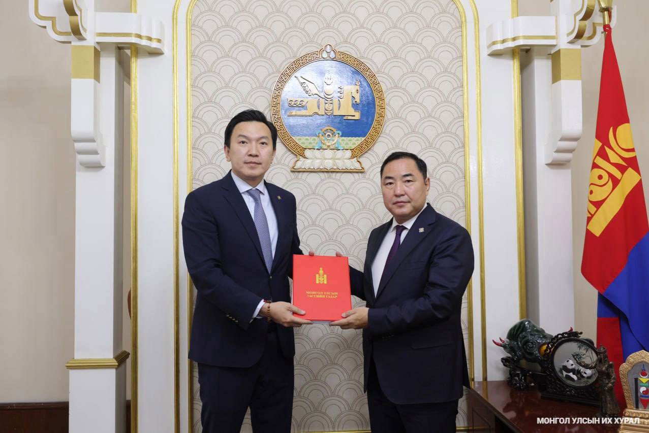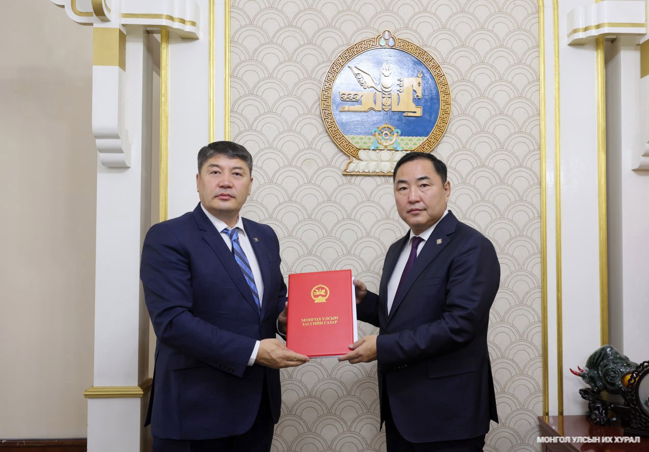 2025.10.30. Улсын Их Хурлын дэд дарга Б.Пүрэвдоржид Улсын Их Хурлын гишүүн, Засгийн газрын гишүүн, Монгол Улсын Тэргүүн шадар сайд бөгөөд Эдийн засаг, хөгжлийн сайд Н.Учрал “Монгол Улсыг 2026-2030 онд хөгжүүлэх таван жилийн үндсэн чиглэл батлах тухай” Улсын Их Хурлын тогтоолын төслийг өргөн мэдүүллээ... https://www.parliament.mn/nn/75997/