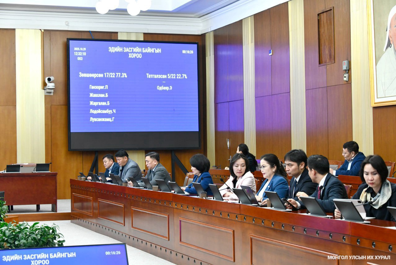 2025.10.29. Эдийн засгийн байнгын хороо хуралдаж, хоёр асуудал хэлэлцэн шийдвэрлэв. Эхлээд Стандартчилал, техникийн зохицуулалт, тохирлын үнэлгээний итгэмжлэлийн тухай хуулийн шинэчилсэн найруулгын төсөл болон хамт өргөн мэдүүлсэн хуулийн төслүүдийг хэлэлцүүлэгт бэлтгэх үүрэг бүхий ажлын хэсгийг шинэчлэн байгуулах Байнгын хорооны тогтоолын төслийг хэлэлцэн батлав. Үргэлжлүүлэн Монгол Улсын 2026 оны төсвийн тухай хуулийн төсөлтэй хамт өргөн мэдүүлсэн Төр, хувийн хэвшлийн түншлэлийн тухай хуульд нэмэлт, өөрчлөлт оруулах тухай хуулийн төсөл, “Үндэсний баялгийн сангийн тухай хуулийг хэрэгжүүлэх зарим арга хэмжээний тухай” Улсын Их Хурлын тогтоолын төслийг хэлэлцэн шийдвэрлэлээ... https://www.parliament.mn/nn/75993/
