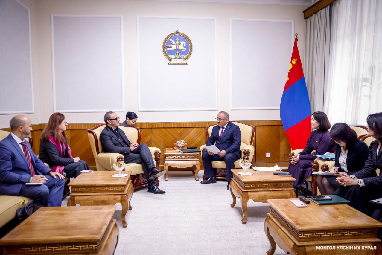 2025.10.30. Улсын Их Хурлын гишүүн, Байгаль орчин, хүнс, хөдөө аж ахуйн байнгын хорооны дарга Б.Бейсен, Улсын Их Хурлын гишүүн Б.Мөнхбаясгалан нар Цөлжилттэй тэмцэх тухай Нэгдсэн Үндэстний Байгууллагын конвенцын Нарийн бичгийн газрын Тамгын газрын дарга Ражеб Булхаруф тэргүүтэй төлөөлөгчдийг хүлээн авч уулзлаа... https://www.parliament.mn/nn/75999/