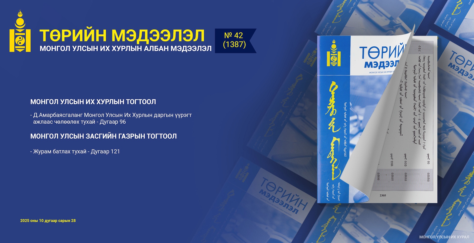 Мөн тус дугаарт “Журам батлах тухай” Монгол Улсын Засгийн газрын тогтоолыг нийтэлсэнтэй дэлгэрэнгүй танилцах боломжтой байна. Тухайлбал, “Журам батлах тухай” Засгийн газрын тогтоолын 1 дүгээр хавсралтаар “Газрын нэгдмэл сангийн удирдлагын нэгдсэн цахим системийн үйл ажиллагааны журам”-ыг, 2 дугаар хавсралтаар “Газар эзэмших, ашиглах эрхийн гэрчилгээ олгох журам”-ыг тус тус баталжээ. “Газрын нэгдмэл сангийн удирдлагын нэгдсэн цахим системийн үйл ажиллагааны журам”-аар Газрын тухай хуулийн 24.6-д заасан Газрын нэгдмэл сангийн удирдлагын нэгдсэн цахим системийн үйл ажиллагаатай холбогдсон харилцааг зохицуулна. Харин “Газар эзэмших, ашиглах эрхийн гэрчилгээ олгох журам”-аар аймаг, нийслэл, дүүргийн газрын алба, сумын газрын даамал, хууль тогтоомжоор эрх олгогдсон байгууллага нь Газрын нэгдмэл сангийн удирдлагын нэгдсэн цахим системээр дамжуулан газар эзэмших, ашиглах эрхийн гэрчилгээ олгох, түүнтэй холбогдсон бусад харилцааг зохицуулах ажээ хэмээн УИХ-ын Хэвлэл мэдээллийн газраас мэдээллээ.