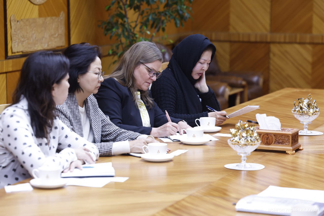 Суурин төлөөлөгч, хатагтай Шэннон Коулин Хүний хөгжил, нийгмийн бодлогын байнгын хороо эрхлэх асуудлынхаа хүрээнд эрүүл мэндийн даатгалын тогтолцоо, түүний эрх зүйн орчныг шинэчлэх, сангийн засаглалыг сайжруулахаар ажиллаж буйг сайшаан, энэ талаар болон нийгмийн эрүүл мэнд, тусгай мэргэжлийн боловсрол сургалтыг дэмжих чиглэлээр хамтран ажиллахаа илэрхийллээ гэж Улсын Их Хурлын Хэвлэл мэдээллийн газраас мэдээлэв.