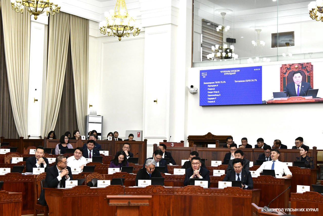 2025.11.14. Чуулганы нэгдсэн хуралдааны эхэнд "Монгол Улсыг 2026-2030 онд хөгжүүлэх таван жилийн үндсэн чиглэл батлах тухай” Улсын Их Хурлын тогтоолын төслийн хэлэлцэх эсэхийг үргэлжлүүлж, үзэл баримтлалын хүрээнд хэлэлцэхийг дэмжсэнд тооцон анхны хэлэлцүүлэгт бэлтгүүлэхээр шилжүүлэв. Үргэлжлүүлэн Монгол Улсын 2026 оны төсвийн тухай хуулийн төсөлтэй хамт өргөн мэдүүлсэн хууль, тогтоолын төслийн эцсийн хэлэлцүүлгийг хийж, эцэслэн баталлаа... https://www.parliament.mn/nn/76109/
