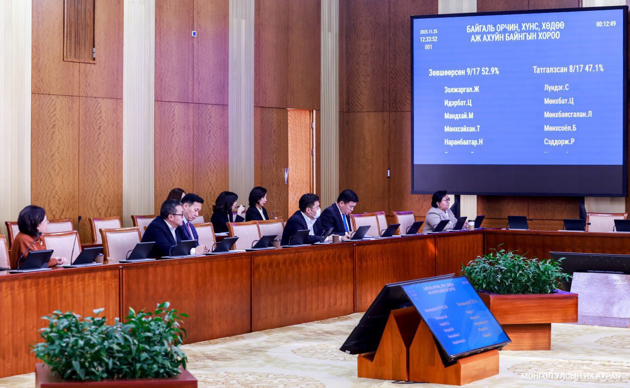 2025.11.25. Төрийн байгуулалтын байнгын хорооны хуралдаанаар Монгол Улсын Их Хурлын 2025 оны намрын ээлжит чуулганаар хэлэлцэх асуудлын жагсаалтад ороогүй хууль, тогтоолын төслүүдийг чуулганаар хэлэлцүүлэх эсэх асуудлыг шийдвэрлэв... https://www.parliament.mn/nn/76161/