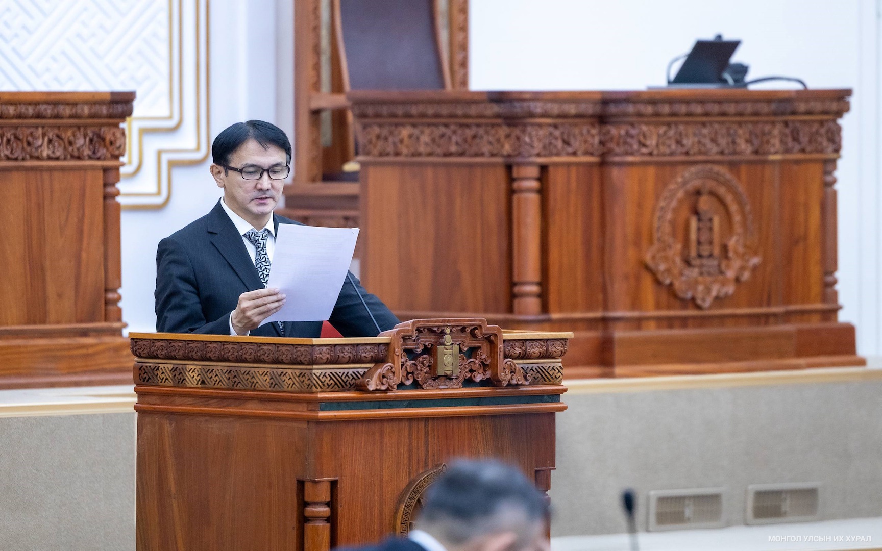 Төсөл санаачлагчийн илтгэлийг Улсын Их Хурлын гишүүн У.Отгонбаяр, Төрийн байгуулалтын байнгын хорооны санал, дүгнэлтийг Улсын Их Хурлын гишүүн С.Зулпхар танилцууллаа.