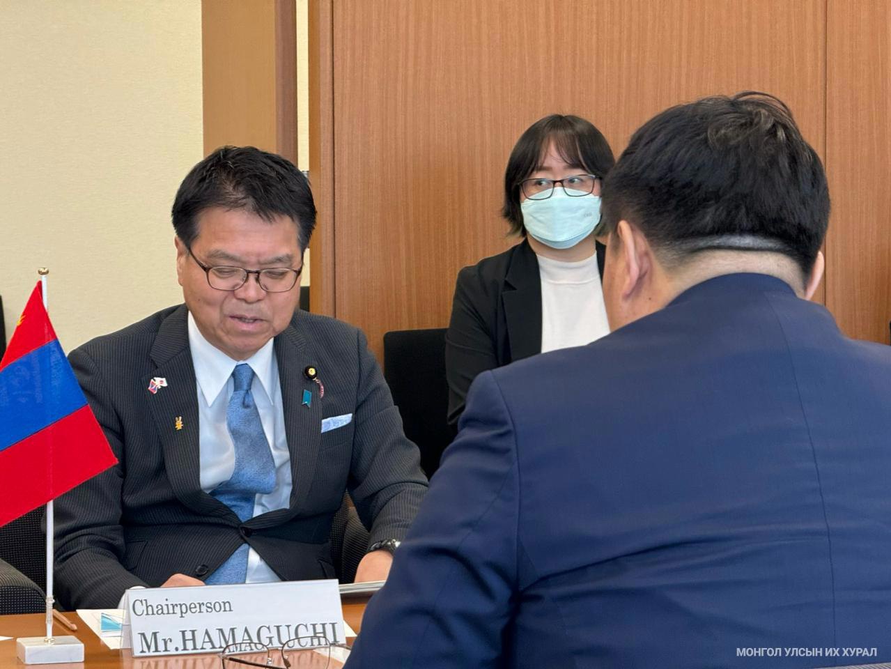Уулзалтад Монгол Улсаас Япон Улсад суугаа Онц бөгөөд Бүрэн Эрхт Элчин сайд Б.Баярсайхан болон албаны бусад хүмүүс байлцсан юм хэмээн Улсын Их Хурлын Хэвлэл мэдээллийн газраас мэдээллээ.