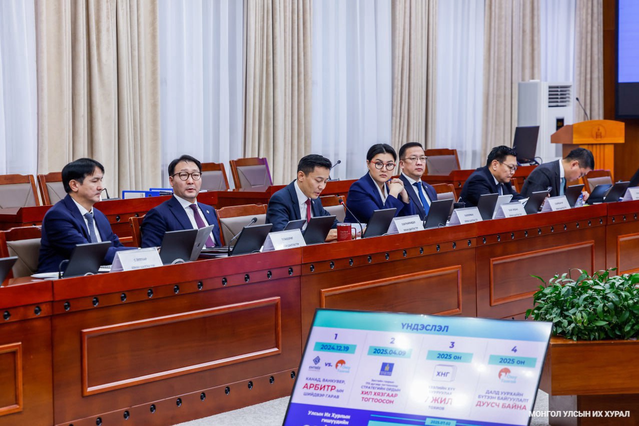 2025.12.11. Улсын Их Хурлын чуулганы үдээс хойших нэгдсэн хуралдаанаар үдээс өмнө хэлэлцэж эхэлсэн Монгол Улс болон Евразийн эдийн засгийн холбоо, түүний гишүүн орнууд хоорондын худалдааны түр хэлэлцээрийг соёрхон батлах тухай хуулийн төслийг үргэлжлүүлэн хэлэлцэж дуусгав. Мөн, Засгийн газраас өргөн мэдүүлсэн Стратегийн ач холбогдол бүхий бүтээгдэхүүний хангамж нийлүүлэлтийг дэмжих тухай хуулийн төслийн эцсийн хэлэлцүүлгийг хийж, Монгол Улсыг 2026-2030 онд хөгжүүлэх таван жилийн үндсэн чиглэл баталсантай холбогдуулан авах зарим арга хэмжээний тухай Улсын Их Хурлын тогтоолын төсөл, “Засгийн газарт чиглэл өгөх тухай” тогтоолын төслийг хэлэлцлээ... https://www.parliament.mn/nn/76279/