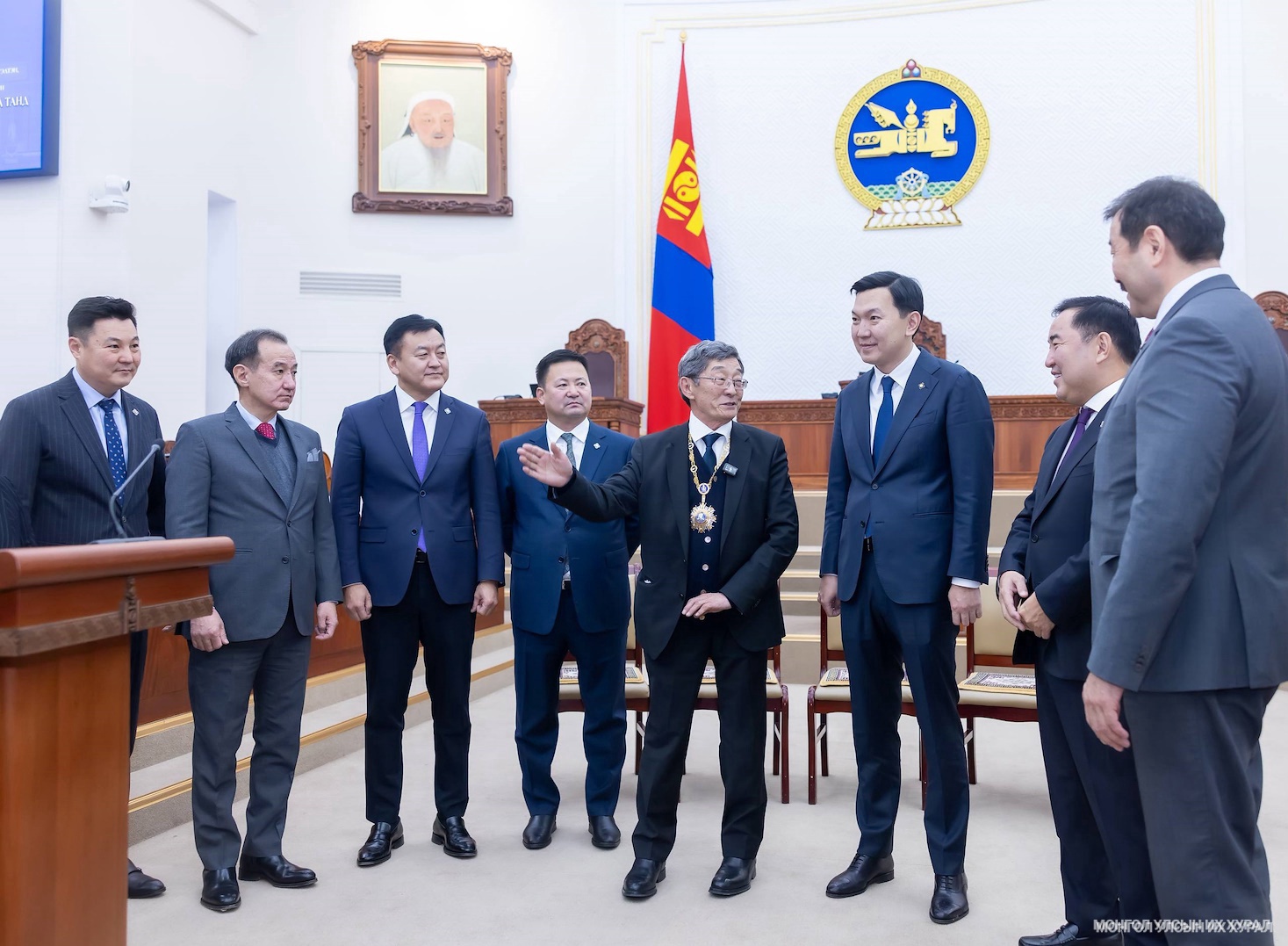 2025.12.10. Улсын Их Хурлын дарга Н.Учрал болон зарим гишүүд Монгол Улсын төрийн тэргүүн зэргийн “Чингис хаан” одон хүртсэн академич С.Нарангэрэлд хүндэтгэл үзүүллээ. Улсын Их Хурлын дарга Н.Учрал энэ үеэр хууль, эрх зүйн эрдэм шинжилгээ, судалгааны олон арван бүтээл туурвиж, гадаад орнуудын эрх зүйн тогтолцоог судлах, тэдгээрээс суралцах ажлыг манлайлсан нэрт судлаач болохыг тэмдэглэн, түүннд баяр хүргэв... https://www.parliament.mn/nn/76270/