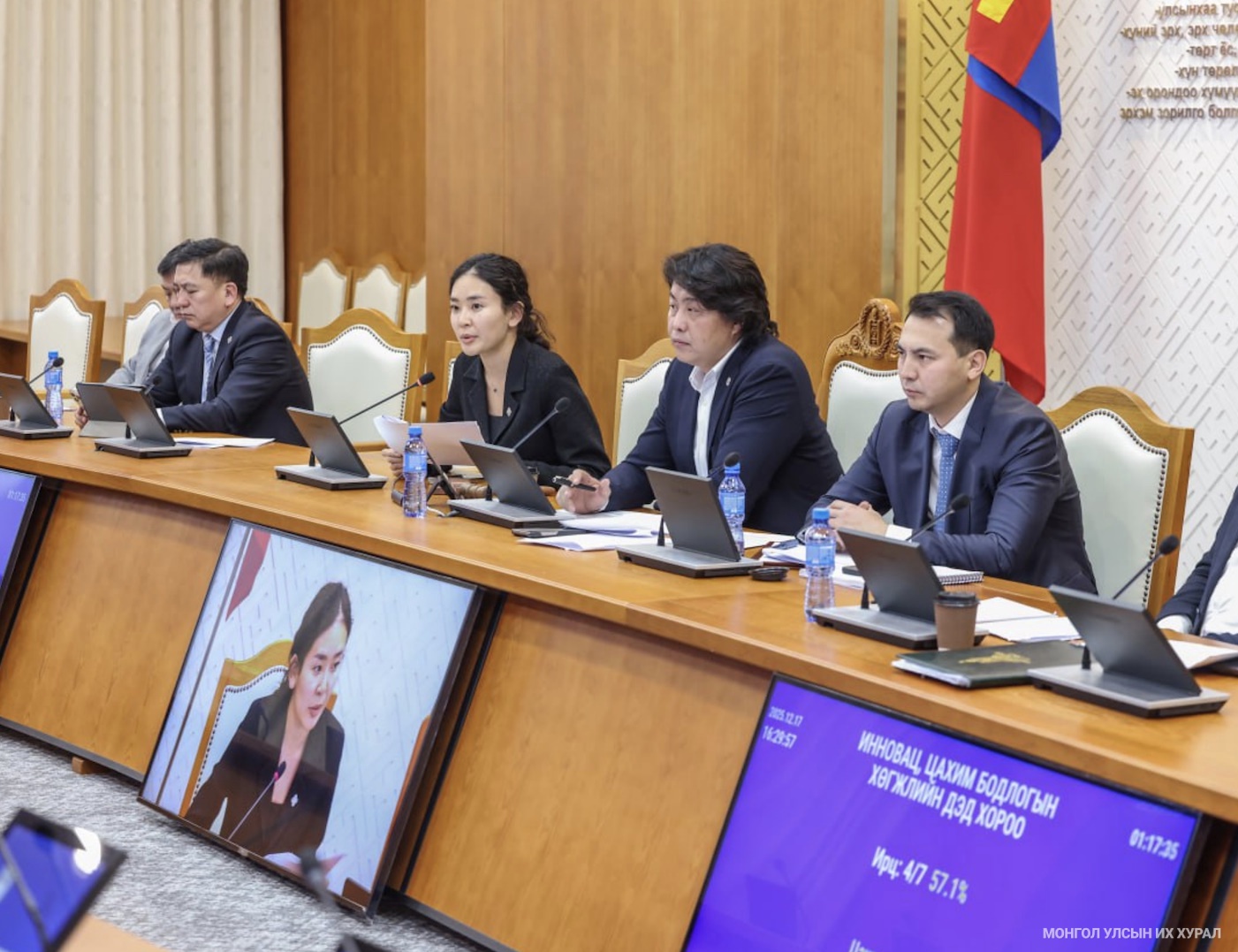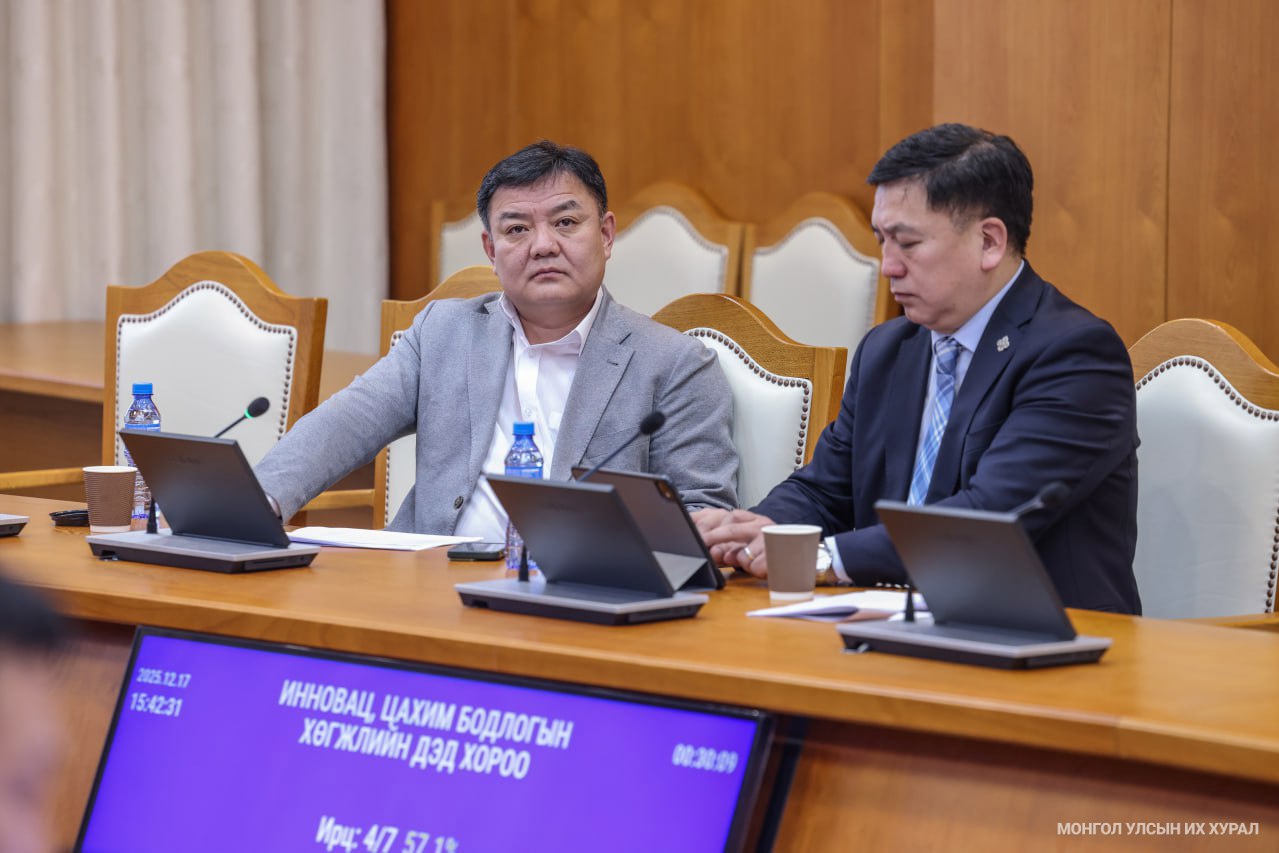 Монгол Улсын Их Хурлын Инновац, цахим бодлогын хөгжлийн дэд хорооны өнөөдрийн /2025.12.17/ хуралдаан Улсын Их Хурлын гишүүн Ч.Анар, Р.Батболд, П.Ганзориг, Л.Соронзонболд нарын 57.1 хувийн ирцтэйгээр 15 цаг 05 минутад эхлэв. Хуралдааныг дэд хорооны дарга Ч.Анар даргалж, хэлэлцэх асуудлыг танилцуулсан.