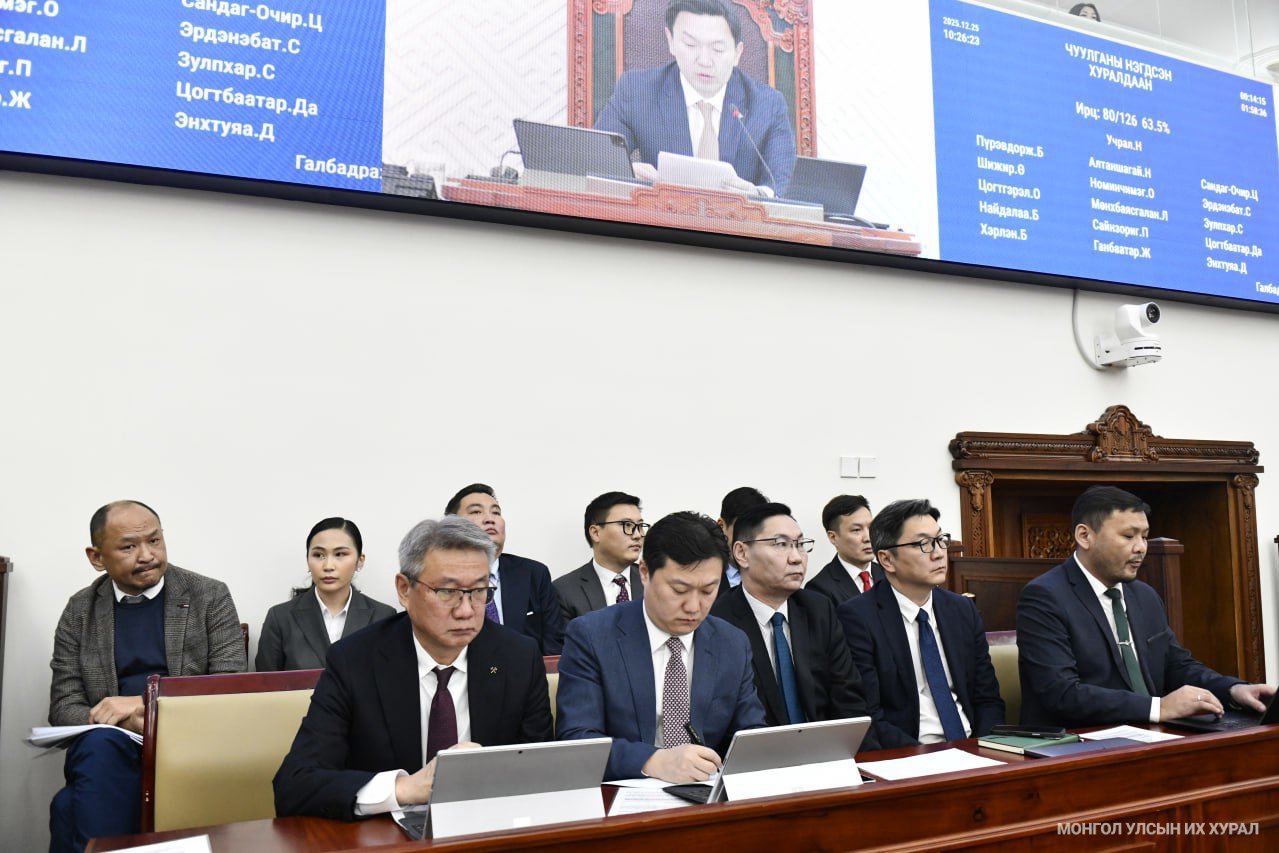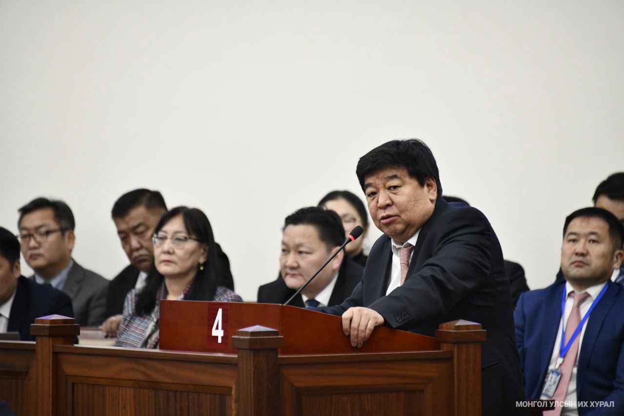 Төслийн талаар Улсын Их Хурлын гишүүн, Засгийн газрын гишүүн, Монгол Улсын сайд, Засгийн газрын Хэрэг эрхлэх газрын дарга С.Бямбацогт танилцуулав.