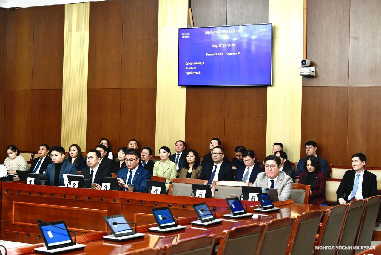 2025.12.23. Төрийн байгуулалтын байнгын хорооны хуралдаанаар Засгийн газраас өргөн мэдүүлсэн Монгол Улс болон Азийн хөгжлийн банк хоорондын Санхүүжилтийн ерөнхий хөтөлбөр соёрхон батлах тухай хуулийн төсөл, Н.Алтаншагай нарын Улсын Их Хурлын 21 гишүүнээс өргөн мэдүүлсэн Гадаад зээллэгийн ашиглалт, үр ашгийг нэмэгдүүлэх тухай хуулийн төслийг хэлэлцэхийг дэмжив. Мөн, Төрийн өмчит хуулийн этгээдийн хувьцааг 2026-2028 онд биржээр олон нийтэд нээлттэй худалдах, төрийн өмчийг хувьчлах, өөрчлөн байгуулах үндсэн чиглэл батлах тухай” Улсын Их Хурлын тогтоолын төслийг хэлэлцэхийг дэмжлээ... https://www.parliament.mn/nn/76365/