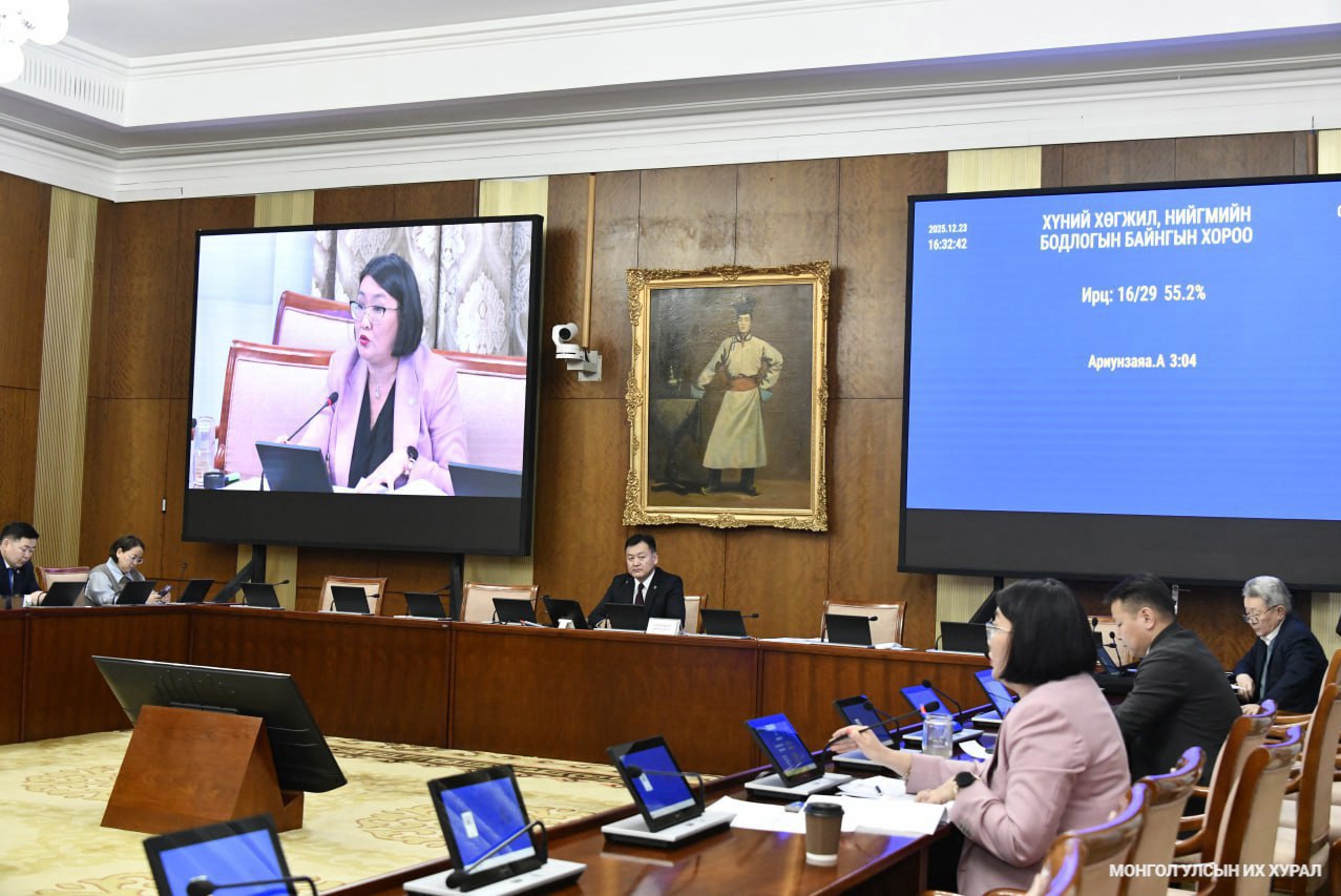 2025.12.23. Хүний хөгжил, нийгмийн бодлогын байнгын хорооны хуралдаанаар Хуулийн төслүүдийг хэлэлцүүлэгт бэлтгэх ажлын хэсгүүд байгуулж, үйлдвэрлэлийн осол, мэргэжлээс шалтгаалсан өвчний даатгалын сангийн зардлын талаарх асуулгын хариуг сонслоо... https://www.parliament.mn/nn/76389/