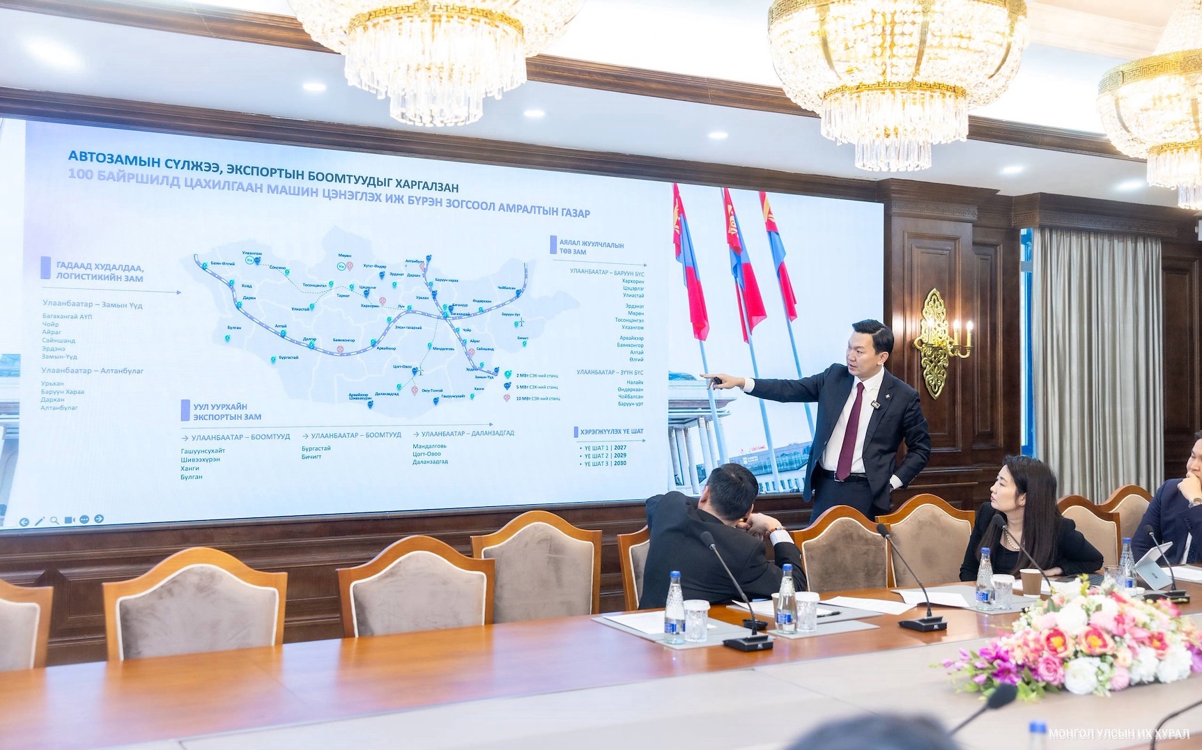 2025.12.23. Улсын Их Хурлын дарга Н.Учрал “Эрчим хүчний болон газрын тосны бүтээгдэхүүний хараат байдлыг бууруулах 3х100 арга хэмжээ”-г салбарын мэргэжилтнүүдэд танилцуулж, уг санаачилгын хүрээнд боловсруулсан Улсын Их Хурлын тогтоолын төслийг салбарынхантай хэлэлцлээ. Энэ үеэр Улсын Их Хурлын дарга сэргээгдэх эрчим хүчний жижиг эх үүсвэрүүдийг сүлжээнд нэгтгэхэд тарифын дэмжлэг үзүүлэх, тархмал эрчим хүчний нөөцийг хүлээн авах, холбох процессыг хялбаршуулах шийдлийн талаар санал дэвшүүлэв... https://www.parliament.mn/nn/76364/