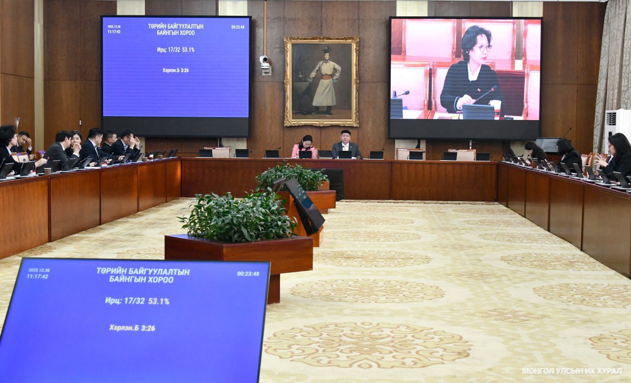 2025.12.30 Монгол Улсын Их Хурлын чуулганы нэгдсэн хуралдаанаар Монгол Улсын Их Хурлын сонгуулийн тухай хуулийн 74 дүгээр зүйлийн 74.2.2, 74.2.3, 74.2.4, 74.3.2, 74.3.3, 74.3.4, 74.3.5 дахь заалт Монгол Улсын Үндсэн хуулийг зөрчсөн эсэх маргааныг хянан шийдвэрлэсэн тухай Монгол Улсын Үндсэн хуулийн цэцийн 2025 оны 09 дүгээр дүгнэлттэй танилцав. https://www.parliament.mn/nn/76430/