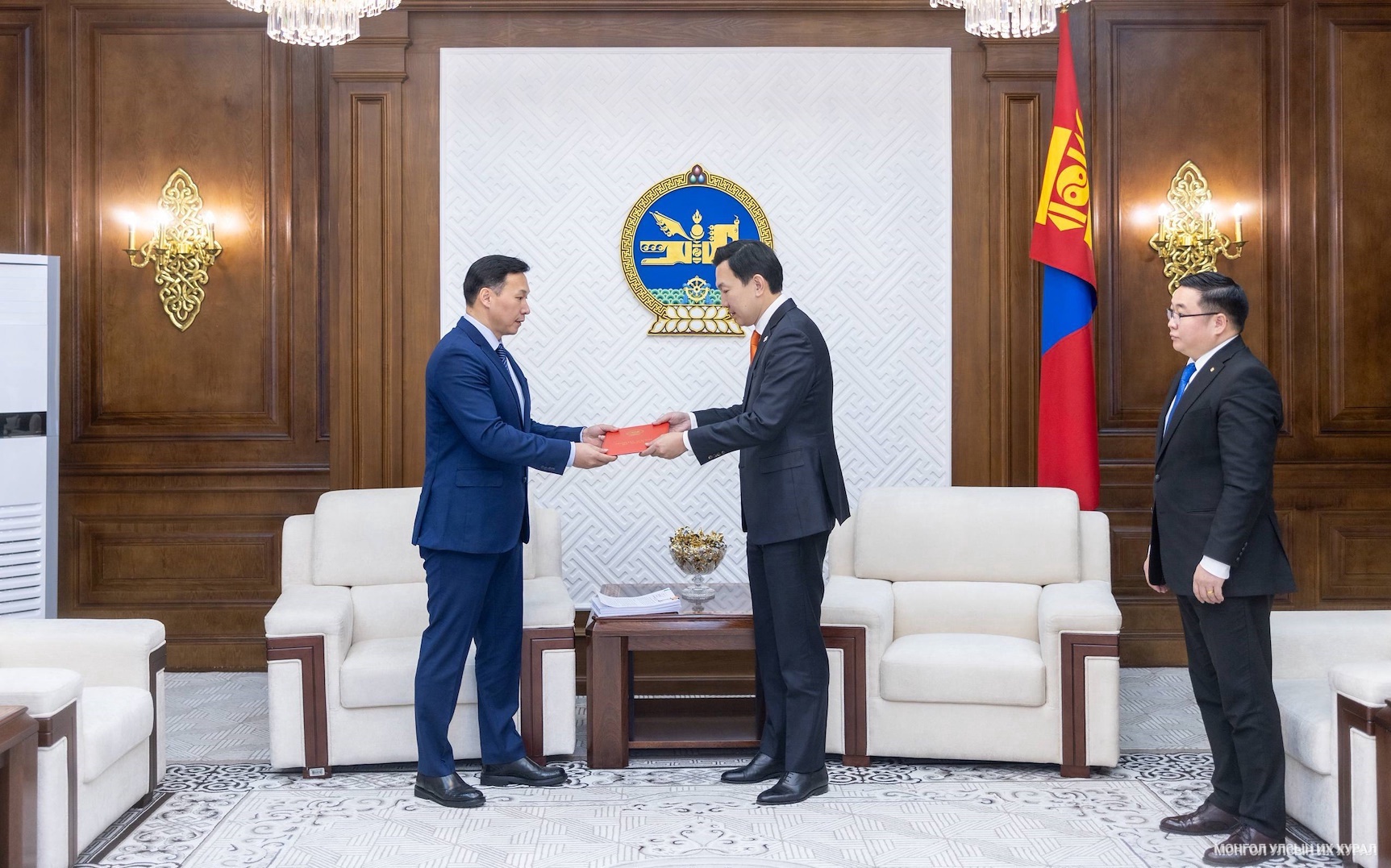 2025.12.30 Улсын Их Хурлын дарга Н.Учралд Монгол Улсын Засгийн газрын гишүүн, Монгол Улсын сайд, Засгийн газрын Хэрэг эрхлэх газрын дарга С.Бямбацогт Татварын ерөнхий хуульд нэмэлт, өөрчлөлт оруулах тухай хуулийн төсөл болон уг хуулийн төсөлтэй холбогдуулан боловсруулсан бусад хуулийн төслүүдийг өргөн мэдүүллээ. https://www.parliament.mn/nn/76435/
