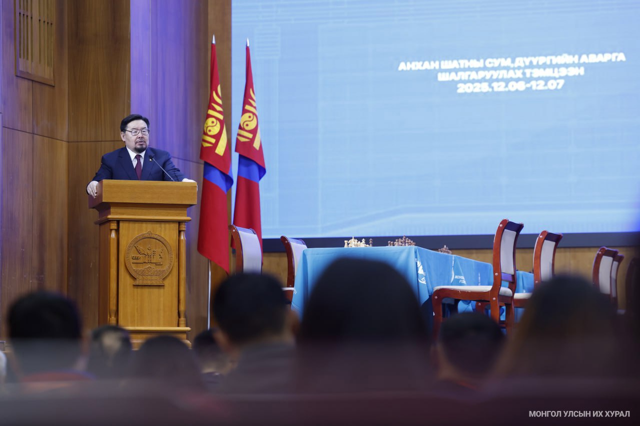 “Монгол Улсын Үндсэн хуулийн өдөр”-т зориулан Улсын Их Хурлаас уламжлал болгон зохион байгуулдаг Шатар сонирхогчдын улсын аварга шалгаруулах тэмцээний шувтаргын тоглолт өнөөдөр /2026.01.10/ Төрийн ордонд эхэллээ.