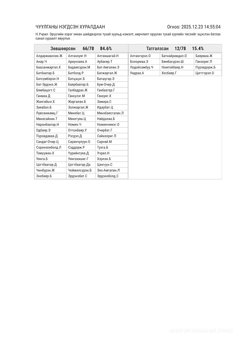Санал хураалтын дүн