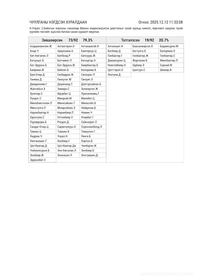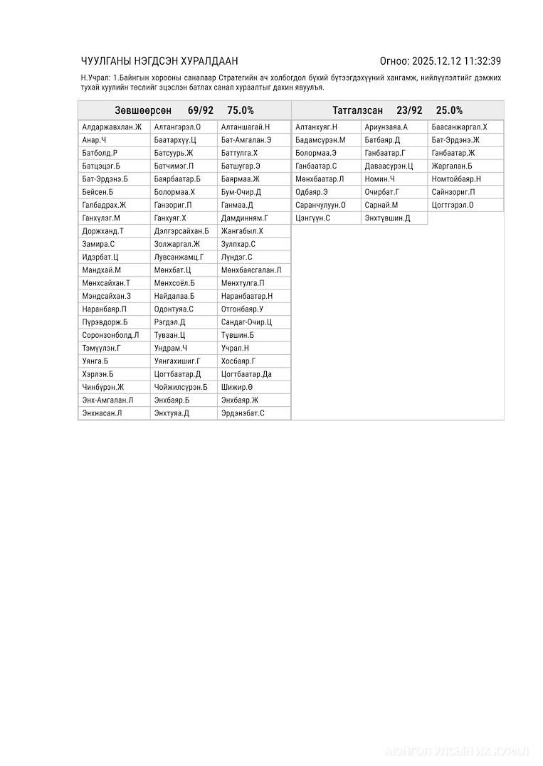 Санал хураалтын дүн