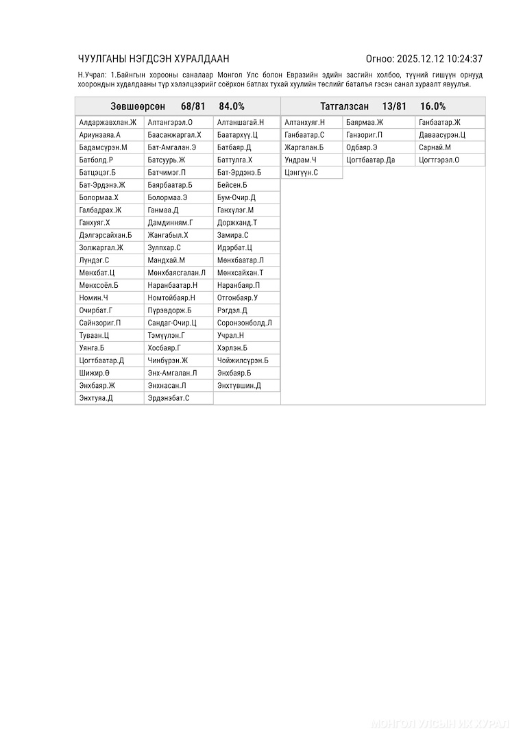 Өргөн мэдүүлсэн төсөл