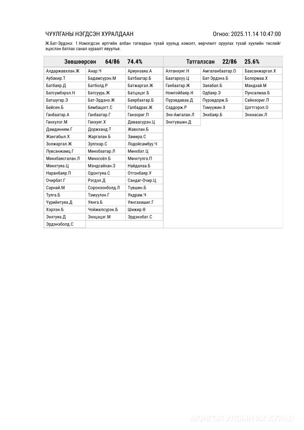Санал хураалтын дүн