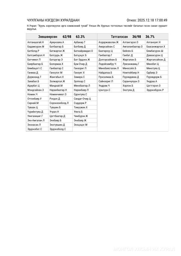 Улсын Их Хурлын бүтэц, зохион байгуулалт