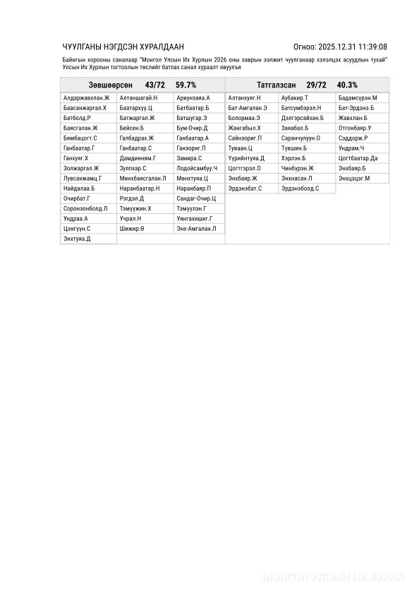 Санал хураалтын дүн