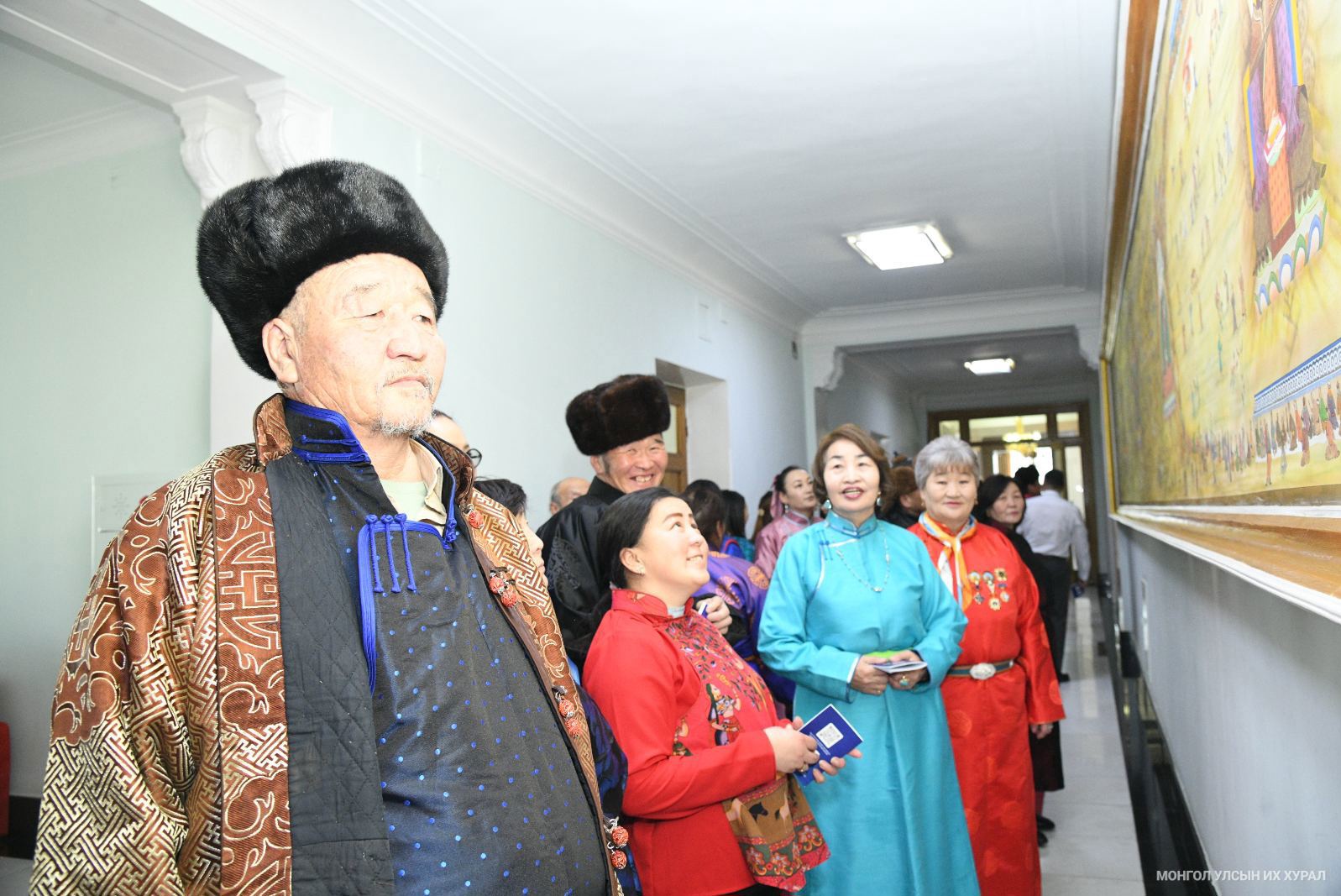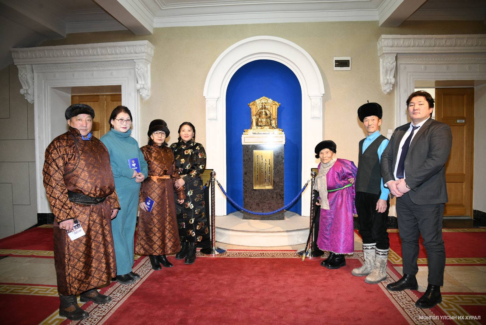 90 нас зооглож яваа эмээгээ Улаанбаатарт эмчлүүлэхээр ирэхэд том ач М.Батсайхан нь Төрийн ордонтой танилцуулж, баярлуулахыг зорьсноо хэлэв. Насаараа “Төрийн сүлд минь өршөө” гэж цай, сүүний дээжээ өргөсөн эмээ тэрхүү цай, сүүний дээжээ холоос сүслэн өргөдөг Төрийн туг, сүлдийг бодитоор нь харж, танилцан, эх хүний хувьд үр хүүхдийнхээ сайн сайхныг даатган залбирдаг хүсэл нь биелж байна хэмээн сэтгэгдлээ илэрхийлсэн.