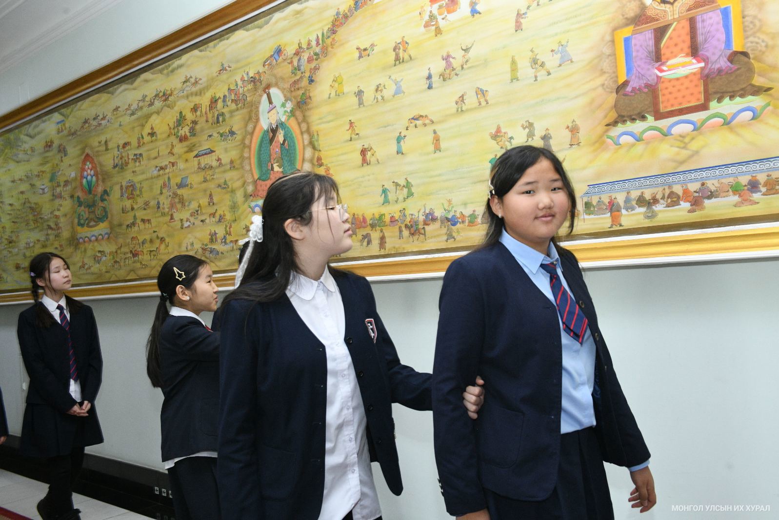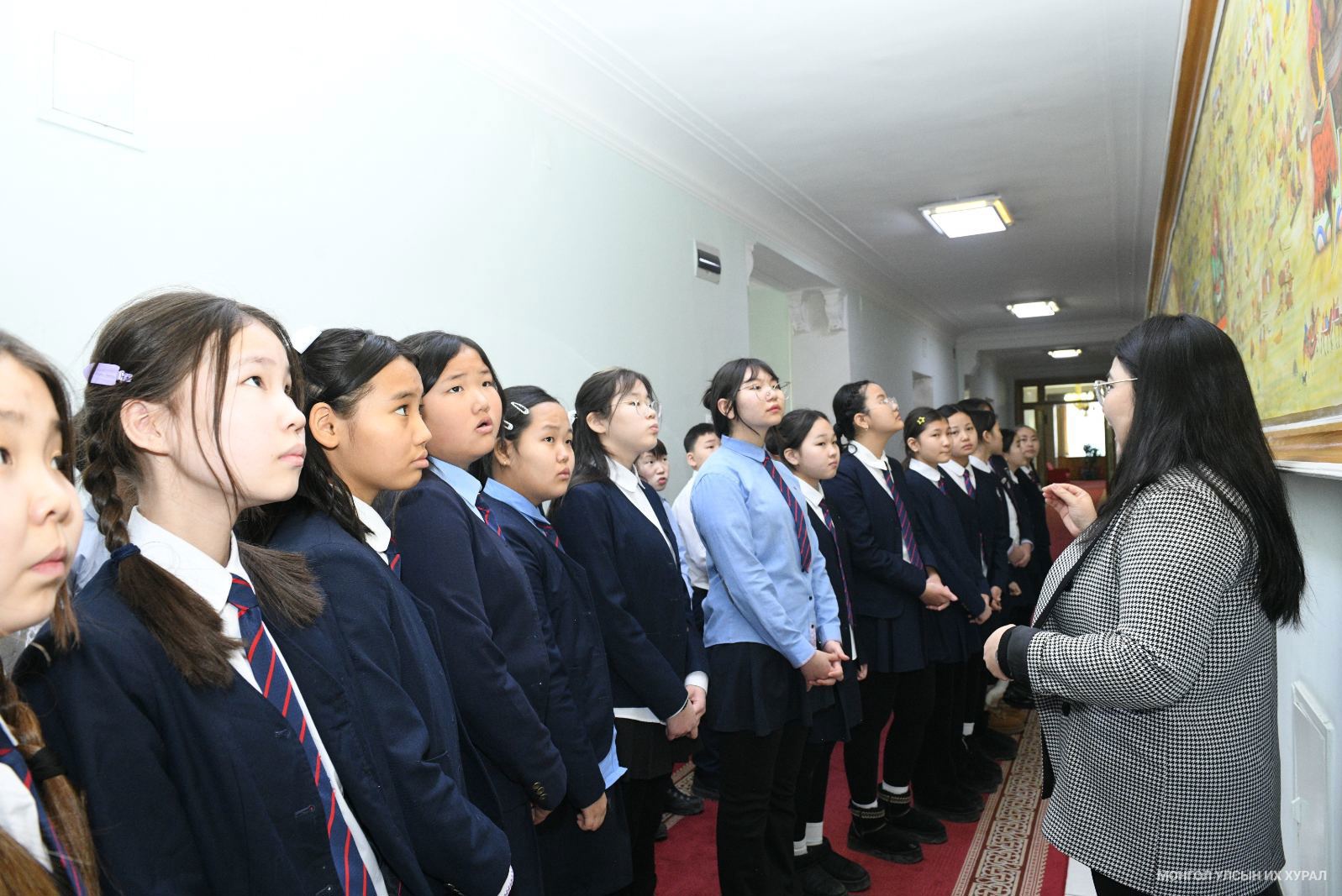 Сурагчид Төрийн есөн хөлт их цагаан тугт хүндэтгэл үзүүлж, дурсгалын зургаа авхуулсны зэрэгцээ Төрийн бэлгэ тэмдгийн талаар мэдээлэл авлаа. Мөн Улсын Их Хурлын үйл ажиллагаатай танилцан, Монгол Улсын Үндсэн хууль болон хүний эрхийн талаарх видео контентыг үзэж, нийгмийн ухааны хичээлийн мэдлэгээ бататгав.