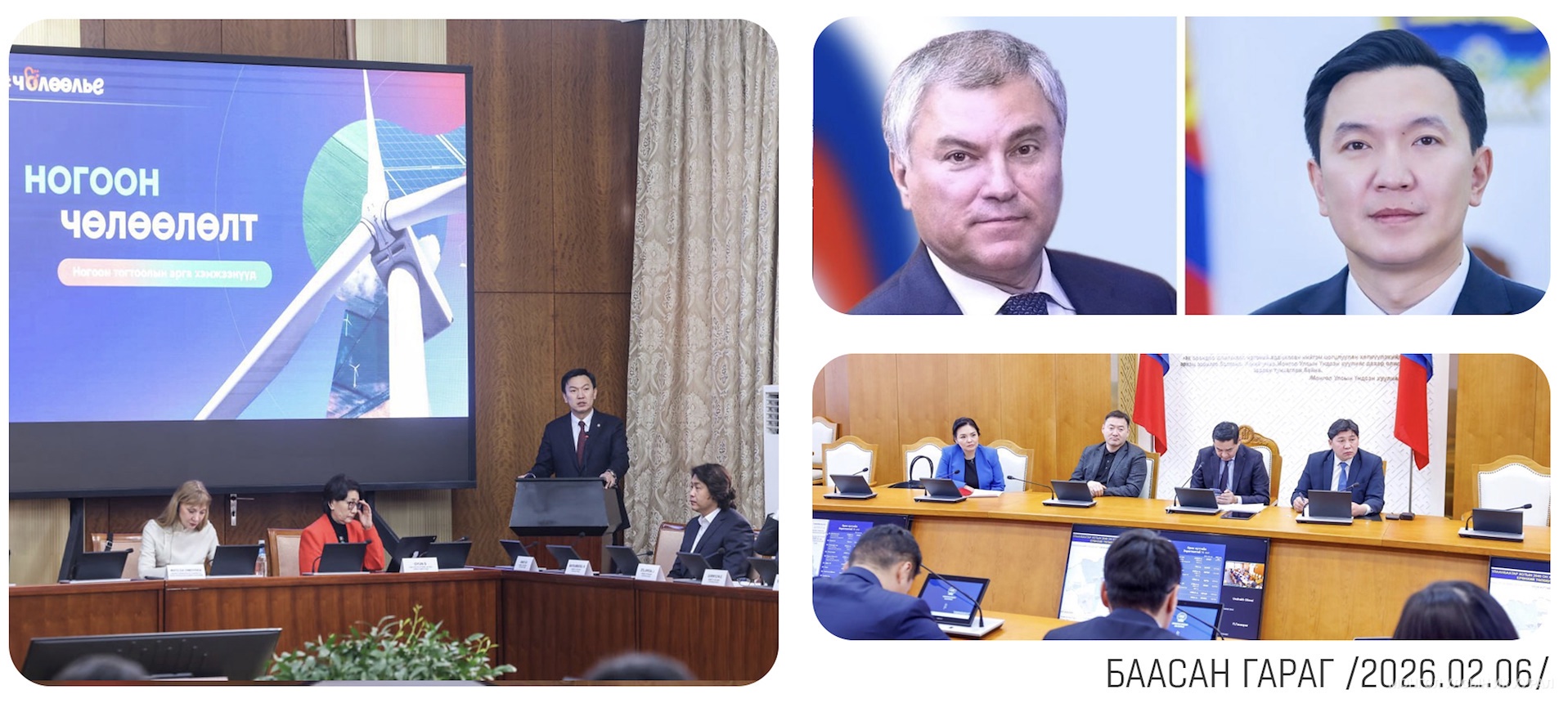 Элчин сайдуудын зүгээс гададын хөрөнгө оруулалт, банк санхүүгийн эрх зүйн орчны шинэчлэлийн талаар таатай мэдээлэл дуулгасанд талархал илэрхийлэхийн зэрэгцээ “Чөлөөлье” санаачилгаар дамжуулан ногоон эрчим хүчний шилжилтийг эхлүүлж, сэргээгдэх эрчим хүчний хэрэглээг өрхийн түвшинд нэмэгдүүлэх зорилтот ажлуудыг дэмжиж, уур амьсгалын өөрчлөлтийн эсрэг түншлэлийг идэвхжүүлэхтэй холбоотой өөрийн орны санаачилгуудаас дурьдлаа... https://www.parliament.mn/nn/76649/, https://www.parliament.mn/nn/76649/, https://www.parliament.mn/nn/76651/, https://www.parliament.mn/nn/76652/