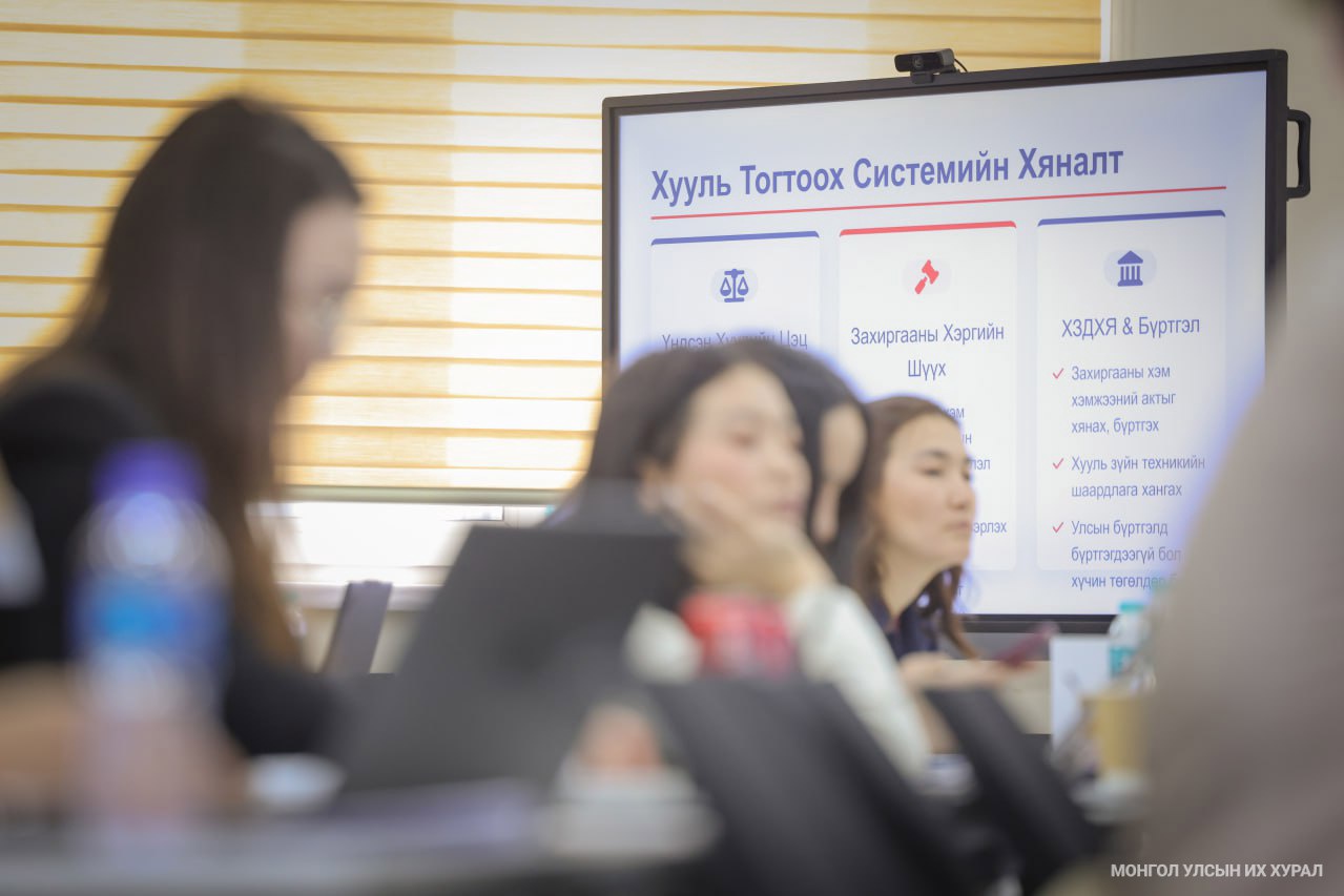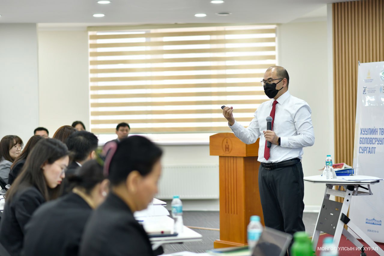 УИХ-ын Тамгын газраас “Хуулийн төсөл боловсруулагчийн сургалт”-ыг Монголын Хуульчдын холбоо, МУИС-ийн Герман, Европын эрх зүйн төвтэй хамтран 2026 оны 02 дугаар сарын 10-13-ны өдрүүдэд зохион байгуулж байна. Сургалтын дөрөв дэх өдөр Үндсэн хуулийн цэцийн гишүүн, хууль зүйн ухааны доктор (Ph.D), дэд профессор О.Мөнхсайхан “Хуульд тавих техникийн шаардлага” сэдвийн хүрээнд “Фуллерийн” гэх зарчмуудын онол, арга зүйг зааж, оролцогчид дадлага ажил хийлээ.