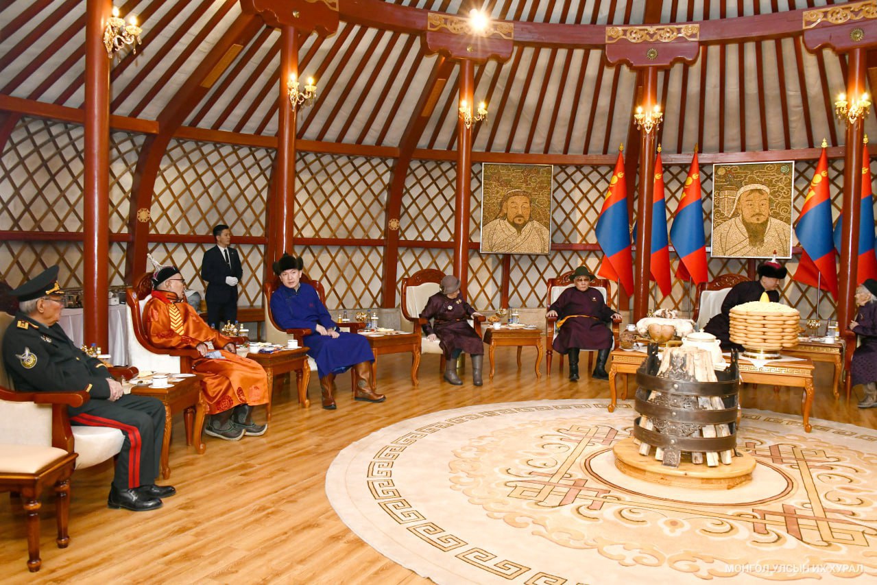 Урган төлжиж, ундран дүүрэхийн бэлгэдэлтэй Цагаан сарын баяраар Монгол төрийн тэргүүн болон Улсын Их Хурлын дарга, Ерөнхий сайд нар нутаг нутгийн төлөөлөл, 80-95 насны есөн ахмадыг Төрийн ёслол хүндэтгэлийн өргөөнд урин золгож, хүндэтгэн мэндчиллээ.