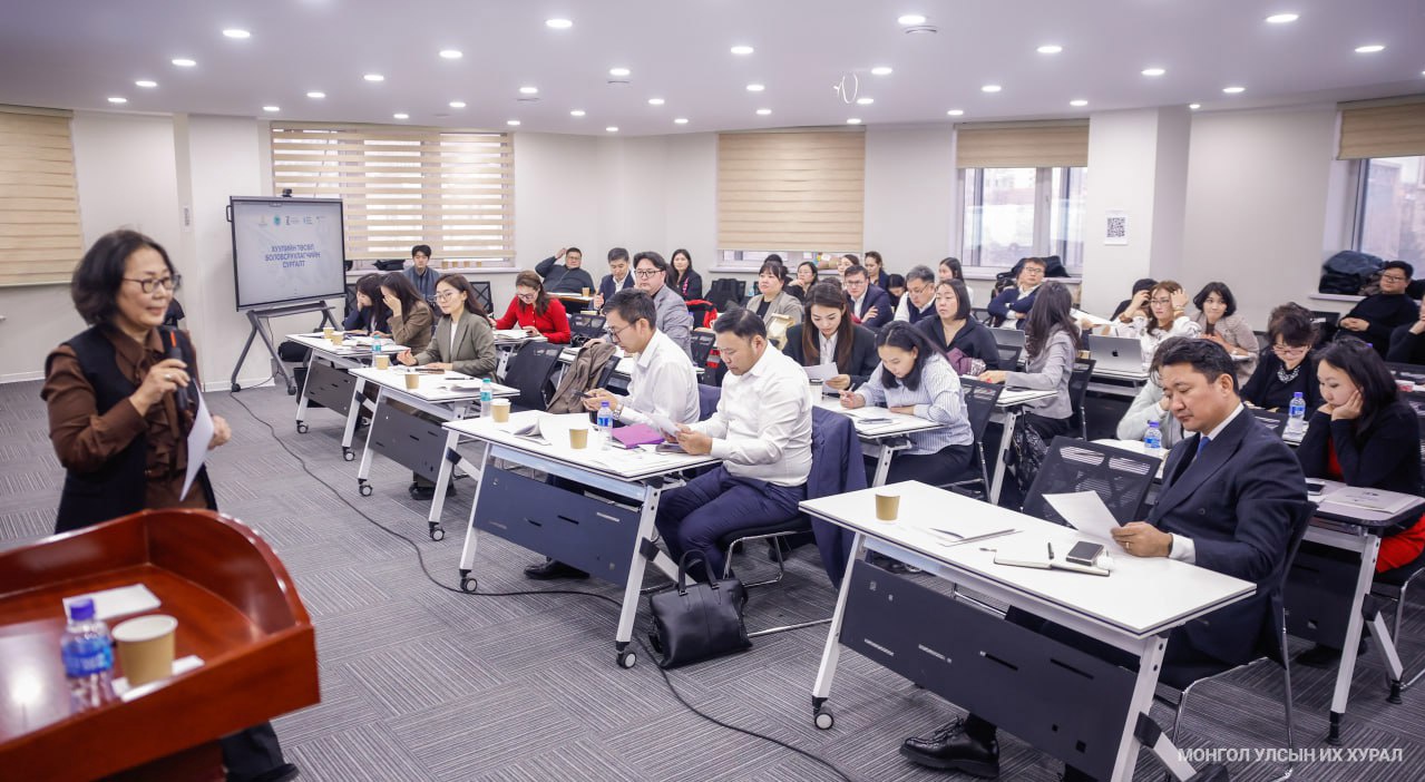 Мөн энэ өдрийн сургалт Улсын Их Хурлын Тамгын газрын Хууль тогтоомжийн хэрэгжилтийн үнэлгээний газрын дарга (LL.M) Ж.Сайнхишигийн “Хуульд тавих техникийн шаардлага-II” сэдвийн хүрээнд хууль зүйн техникийн үүрэг, ач холбогдол, конструкци, найруулга, нэр томьёоны талаарх илтгэлээр үргэлжилсэн.