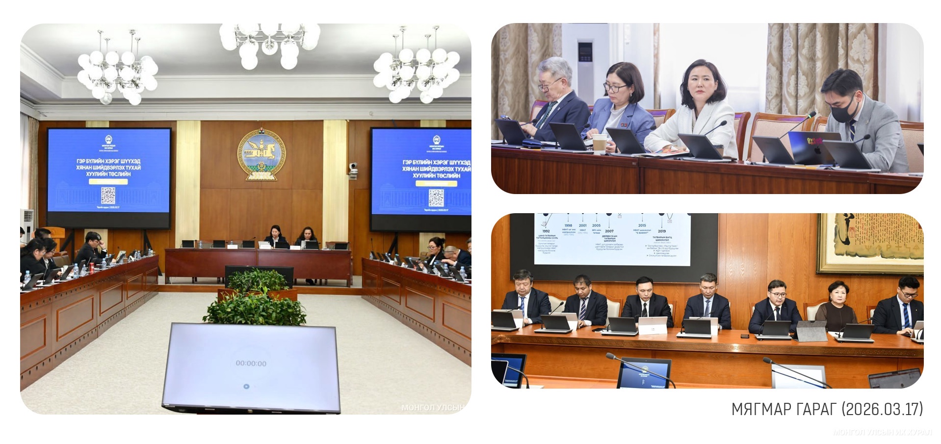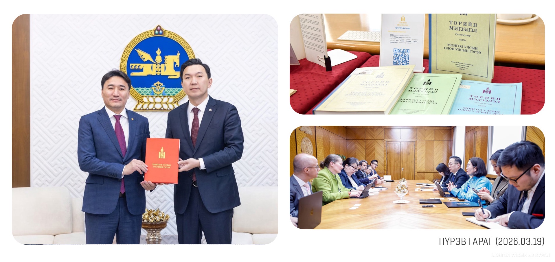 Төрийн байгуулалтын байнгын хорооны хуралдаанаар Монгол Улсын Үндсэн хуулийн цэцийн 2025 оны 12 дугаар дүгнэлт болон 2026 оны 01 дүгээр дүгнэлтийг хэлэлцээд, дүгнэлтүүдийг хүлээн зөвшөөөрөх нь зүйтэй гэж үзлээ... https://www.parliament.mn/nn/76827/