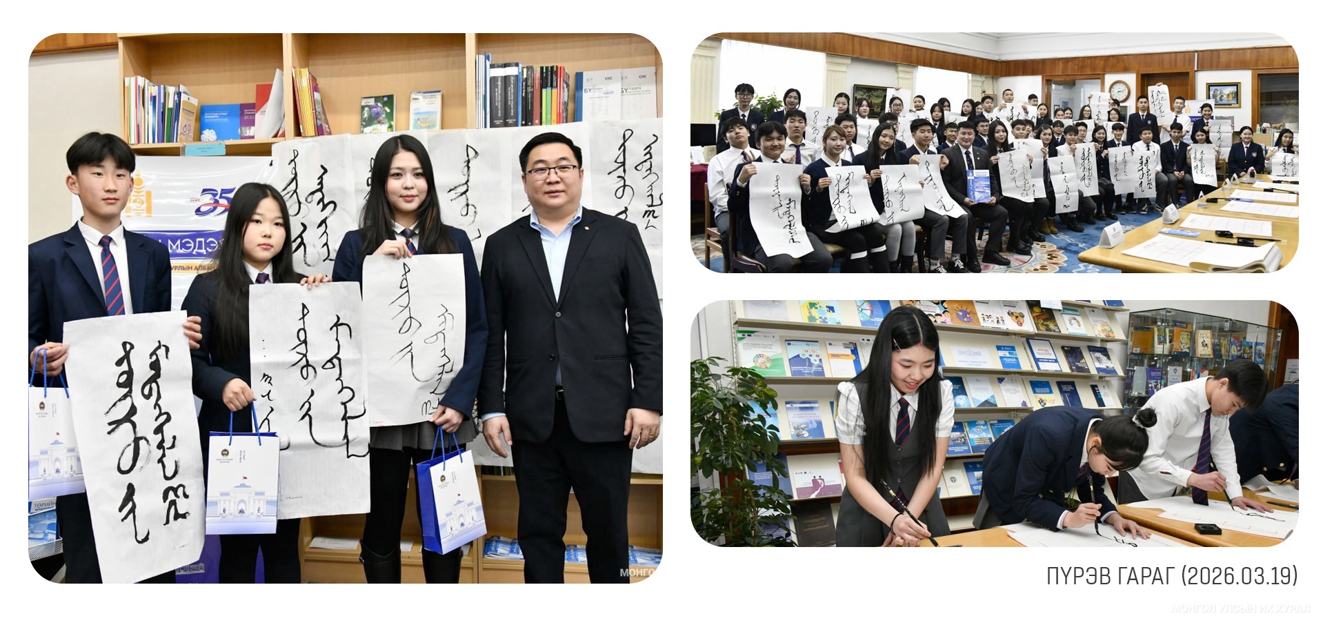 Улсын Их Хурлын Тамгын газраас тогтмол зохион байгуулдаг “Парламентын боловсрол” хөтөлбөрийн Улсын Их Хурлын үйл ажиллагаа, Төрийн ордонтой танилцах аялалд Нийслэлийн ерөнхий боловсролын 141 дүгээр сургуулийн С.Сүрэндорж багштай 10Б ангийн сурагчид оролцлоо. Аяллын үеэр сурагчид Улсын Их Хурлын Тамгын газраас гаргасан баримт бичиг, хууль, тогтоомжийн эмхэтгэл, сэтгүүлийн үзэсгэлэнг үзэж сонирхсоны зэрэгцээ “Төрийн мэдээлэл-35” хэмээх үгийг монгол бичгээр бичих уран бичлэгийн уралдаанд оролцож, шилдгүүдээ шалгаруулав... https://www.parliament.mn/nn/76842/
