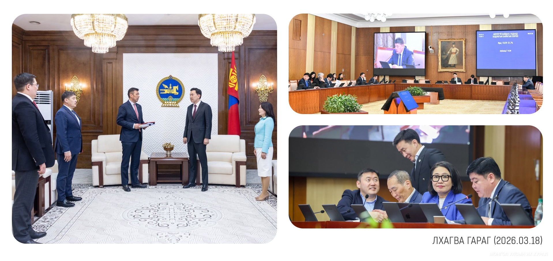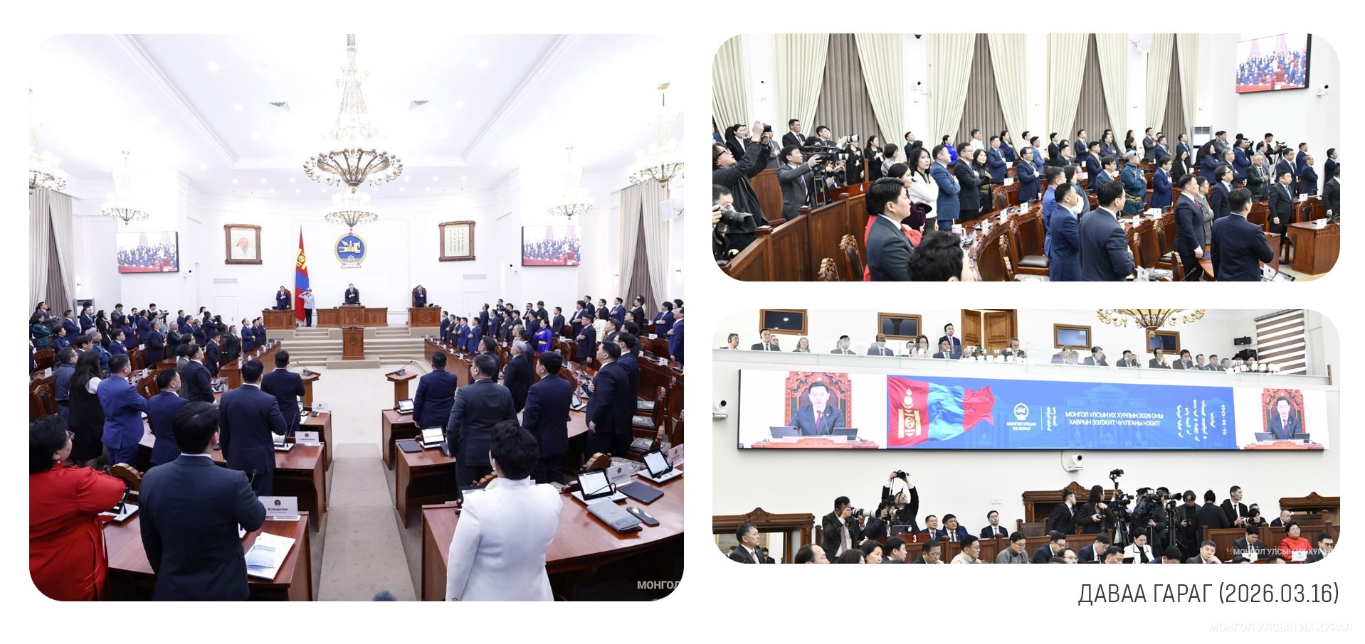Монгол Улсын Их Хурлын 2026 оны хаврын ээлжит чуулган нээлтээ хийлээ. Нээлтийн хуралдаанд анх удаа иргэдийн төлөөллийг урьж оролцуулснаараа онцлог болов. Нээлтэд Монгол Улсын Ерөнхийлөгч үг хэлэв... https://www.parliament.mn/nn/76801/