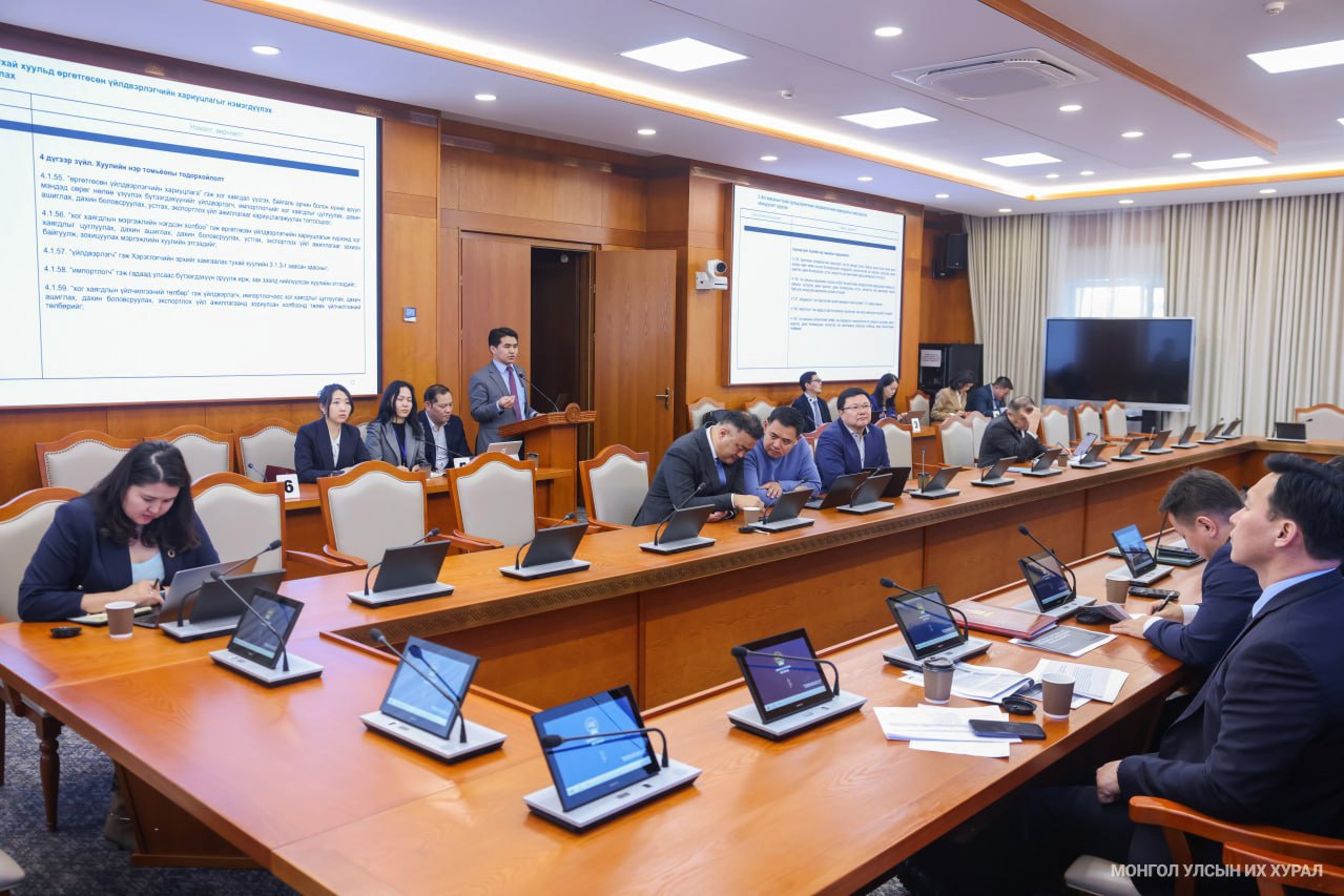 Байгаль орчин, хүнс, хөдөө аж ахуйн байнгын хорооны 2025 оны 18 дугаар тогтоолоор байгуулагдсан Хог хаягдлын тухай хуулийн хэрэгжилтийг хянан шалгах, холбогдох шийдвэрийн төсөл боловсруулах, санал, дүгнэлт гаргах үүрэг бүхий ажлын хэсгийн хуралдаан өнөөдөр /2026.04.01/ “Их засаг” танхимд боллоо. Ажлын хэсгийн хуралдаанд Улсын Их Хурлын гишүүн ажлын хэсгийн ахлагч Б.Мөнхсоёл, Улсын Их Хурлын гишүүн Н.Алтаншагай, Ж.Золжаргал, Т.Мөнхсайхан, А.Ундраа, Б.Уянга нар оролцсон.