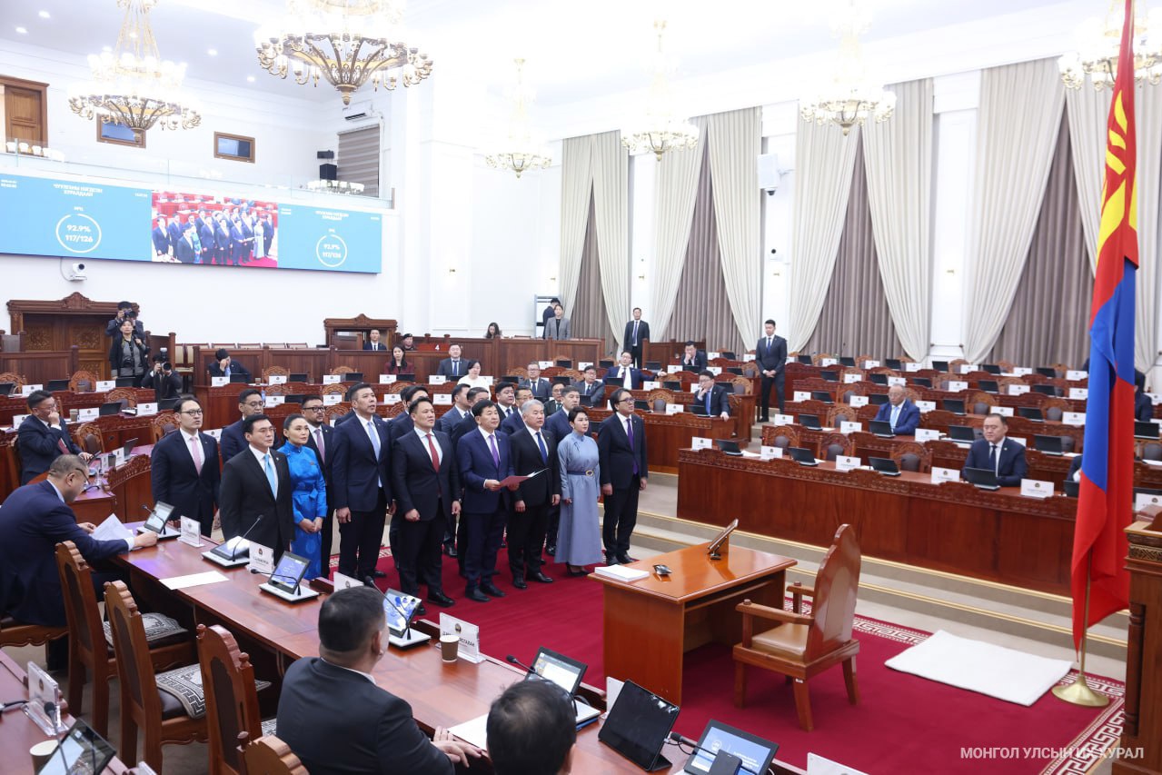 Улсын Их Хурлын чуулганы өнөөдрийн (2026.04.03) нэгдсэн хуралдаан оройн 19:40 цагт үргэлжилж, Засгийн газрын гишүүдийг томилох, чөлөөлөх тухай Монгол Улсын Ерөнхий сайд Н.Учралын танилцуулгыг сонслоо.