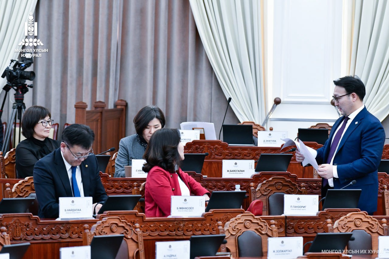 Улсын Их Хурлын асуулгын цагийн дараа чуулганы үдээс өмнөх нэгдсэн хуралдаанаар хэлэлцсэн хуулийн төслүүдээр санал хураалт явууллаа. Монгол Улсын Их Хурлын чуулганы хуралдааны дэгийн тухай хуульд өөрчлөлт оруулах тухай хуулийн төслийн анхны хэлэлцүүлгийг эцсийн хэлэлцүүлэгтэй нэгтгэн явуулах горимын саналыг гишүүдийн 54.7 хувь нь дэмжиж, Үндсэн хуулийн цэцийн 2025 оны 12 дугаар дүгнэлтийг хүлээн зөвшөөрсөнтэй холбогдуулан боловсруулсан уг хуулийн төслийг эцэслэн батлах бэлтгэл хангуулахаар Төрийн байгуулалтын байнгын хороонд шилжүүлэв.