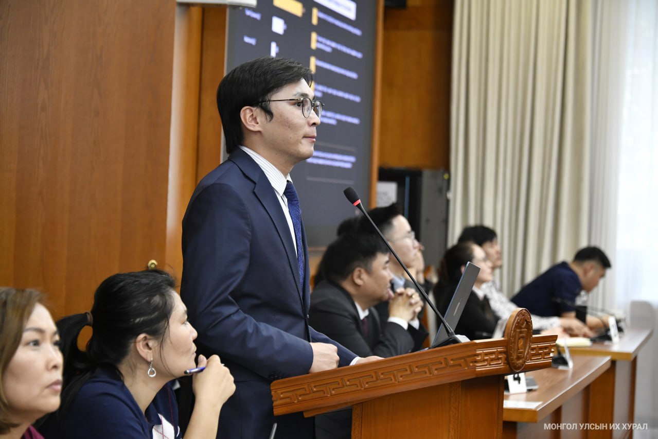 Тэрбээр хэлсэн үгэндээ, Тусгай хамгаалалттай газар нутгийн тухай хуулийн шинэчилсэн найруулгын төслийг өчигдөр Улсын Их Хурлын гишүүдэд танилцуулсан бөгөөд өнөөдөр салбарын төлөөлөл, олон нийтээр хэлэлцүүлж буйг дурдаад, Байгаль орчин, уур амьсгалын яамнаас боловсруулж буй хуулийн төслийн нэгдсэн бодлоготой давхцуулж ажлын хэсгээс төсөл өргөн мэдүүлэх шаардлагагүй гэж үзсэнийг тодотгож байлаа. Мөн тэрбээр ажлын хэсэг болон Улсын Их Хурлын гишүүдийн ахалж буй өргөн мэдүүлэхээр зэхэж байгаа болон Улсын Их Хурлын хэлэлцүүлгийн шатанд байгаа байгаль орчны салбарын эрх зүйн орчныг сайжруулах чиглэлээрх 14 хуулийн төслийн нэмэлт, өөрчлөлт, шинэчилсэн найруулгын төслийн талаар танилцуулахын зэрэгцээ ирэх наймдугаар сард Монгол Улсад болох НҮБ-ын Цөлжилттэй тэмцэх конвенцын талуудын 17 дугаар бага хурлаас өмнө салбарын тодорхой хуулиудын шинэчилсэн найруулгын төслийг Улсын Их Хурлын хаврын чуулганаар батлуулах зайлшгүй шаардлагатайг онцлов.